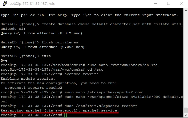 Restarting apache2 ~~ 가 출력 되면 서비스 재 시작에 성공한 것입니다. 여기까지 해서, 오메카 설치 무작정(?) 따라하기가 끝났습니다.