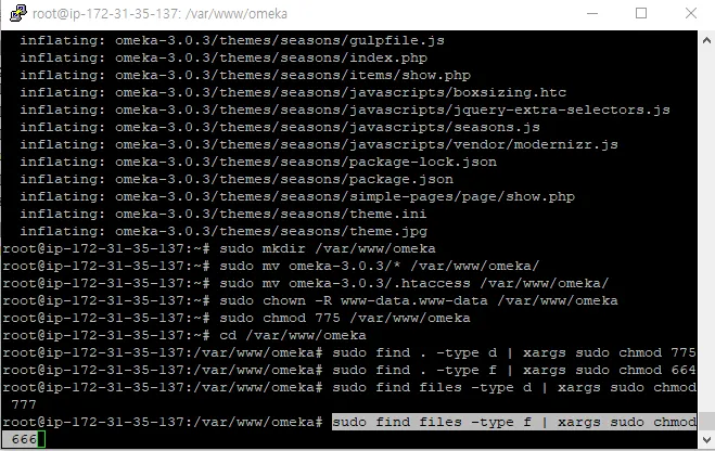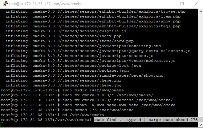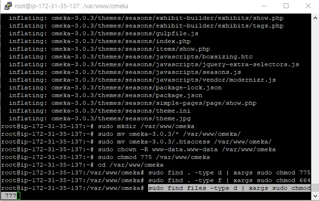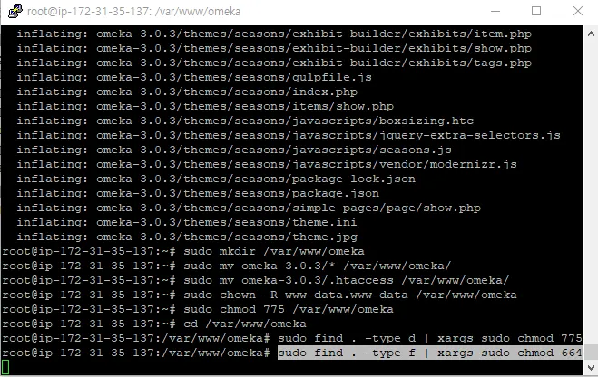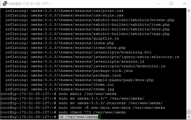 *주의 : omeka를 다른 디렉토리에 설치했을 경우엔 /var/www/omeka 경로를 변경해야 합니다.