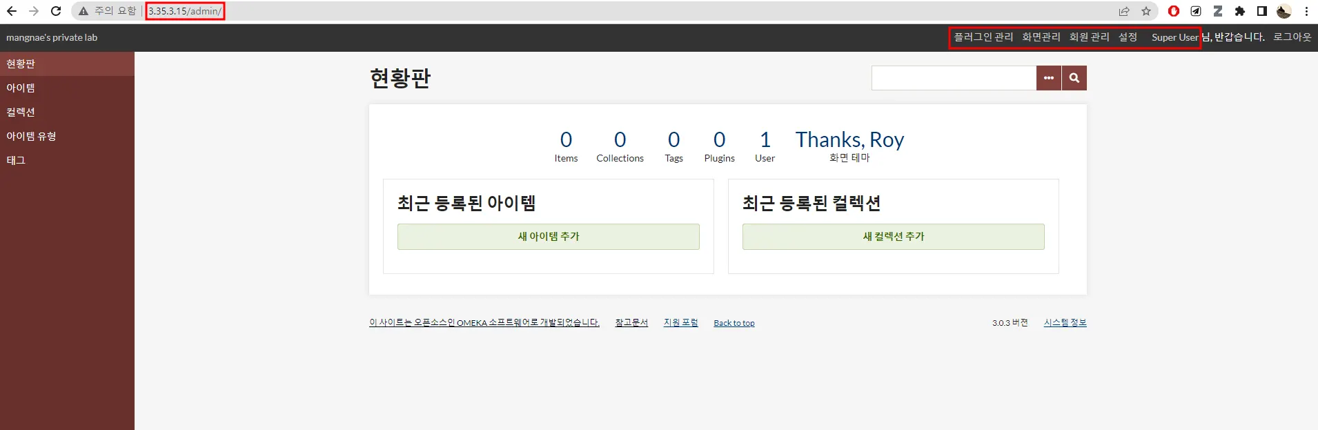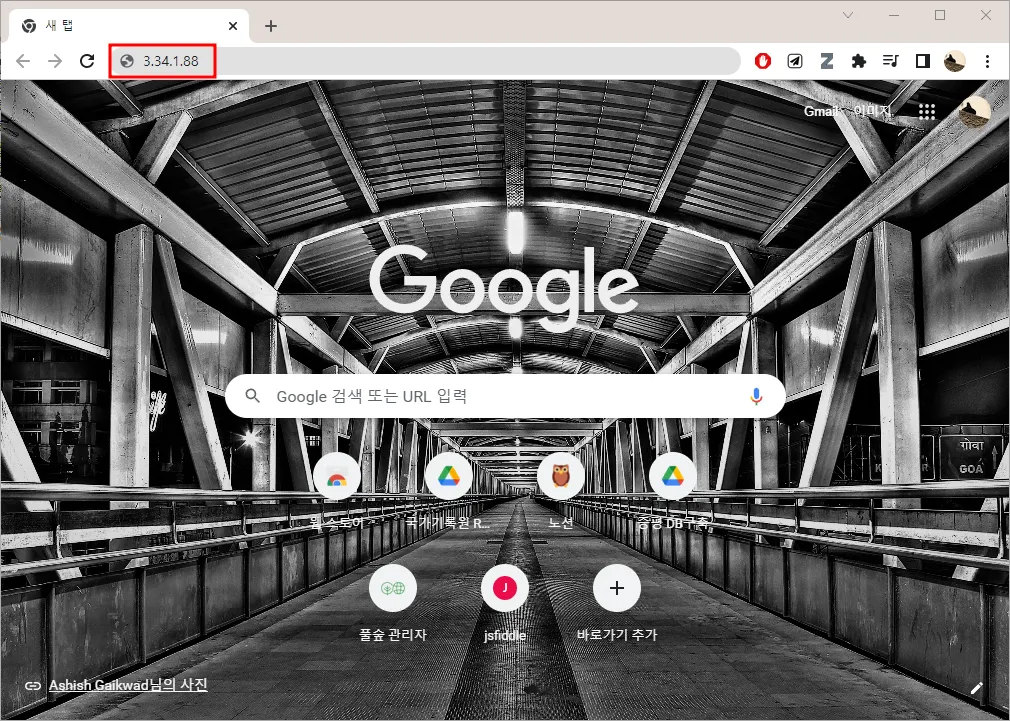 오메카 사이트로 접속하기 위해, 퍼블릭IP를 인터넷 주소창에 입력합니다.