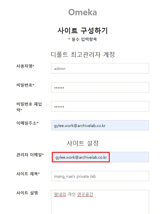 관리자 이메일의 경우, 이메일 중간에 온점(.)이 포함되면 오류가 발생합니다.