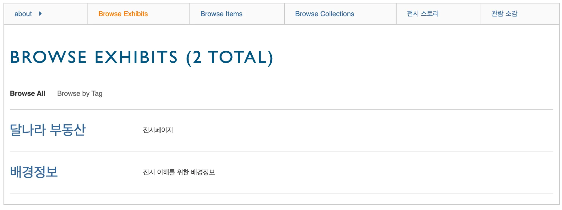 실제 전시를 온라인으로 구현하는 전시페이지와 전시 이해를 돕기 위한 배경정보 페이지로 구성