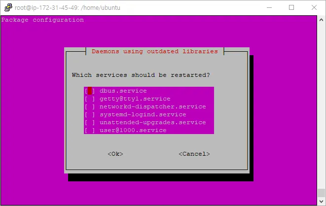 PuTTY 혹은 터미널로 우분투에 접속한 시점에서 시작합니다. 이미지는 PuTTY이지만, 터미널 역시 같은 구조이므로 똑같이 따라오시면 됩니다.