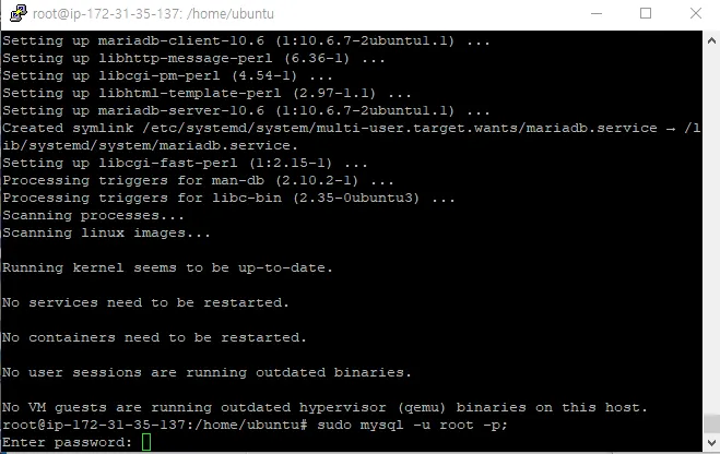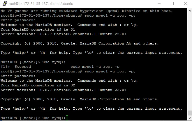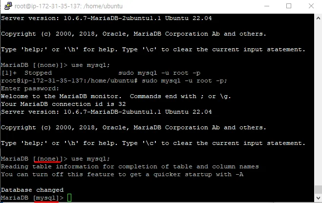 정상적으로 불러왔다면 입력 항목이 위와 같이 “MariaDB [mysql]>”로 전환됩니다.