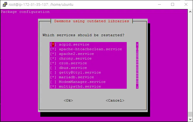 설치 중간에 또 한번 화면이 뜹니다. 마찬가지로 엔터로 넘겨줍니다. 이후 두 개의 설치 명령 중간에 뜨는 화면도 동일하게 넘겨줍니다.