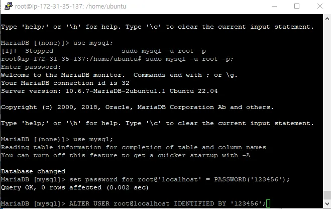 ALTER USER root@localhost IDENTIFIED BY '123456';
