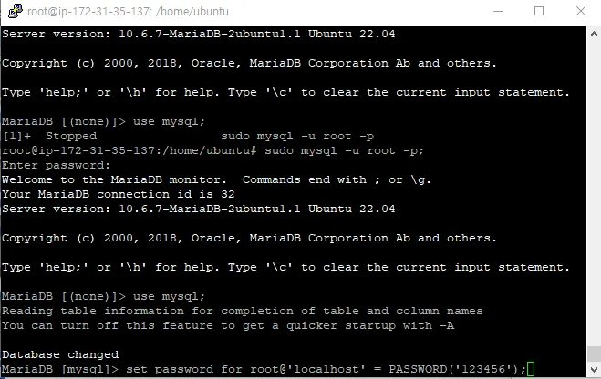 mysql 데이터베이스의 관리자 계정 암호를 변경해줍니다(2).