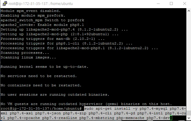 sudo apt-get install -y php7.4-mysql php7.4-xml php7.4-xsl php7.4-json php7.4-zip php7.4-cli php7.4-gd php7.4-intl php7.4-curl php7.4-opcache php7.4-readline php7.4-mbstring php-memcache php7.4-dev