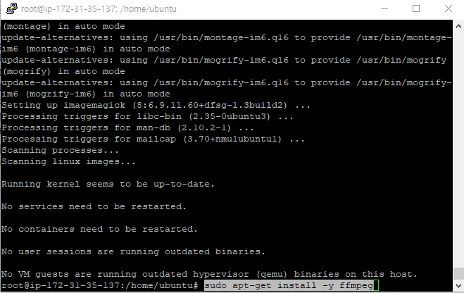 영상, 비디오 등을 인코딩하는 기능의 FFmpeg를 설치합니다.
