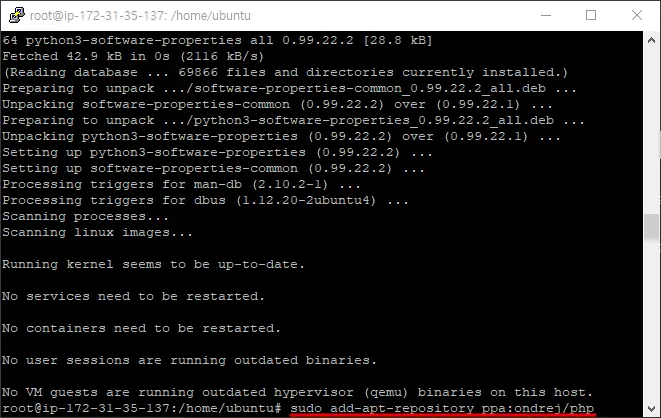 최신 php 빌드패키지가 있는 ppa:ondrej/php PPA 저장소를 추가합니다(2).