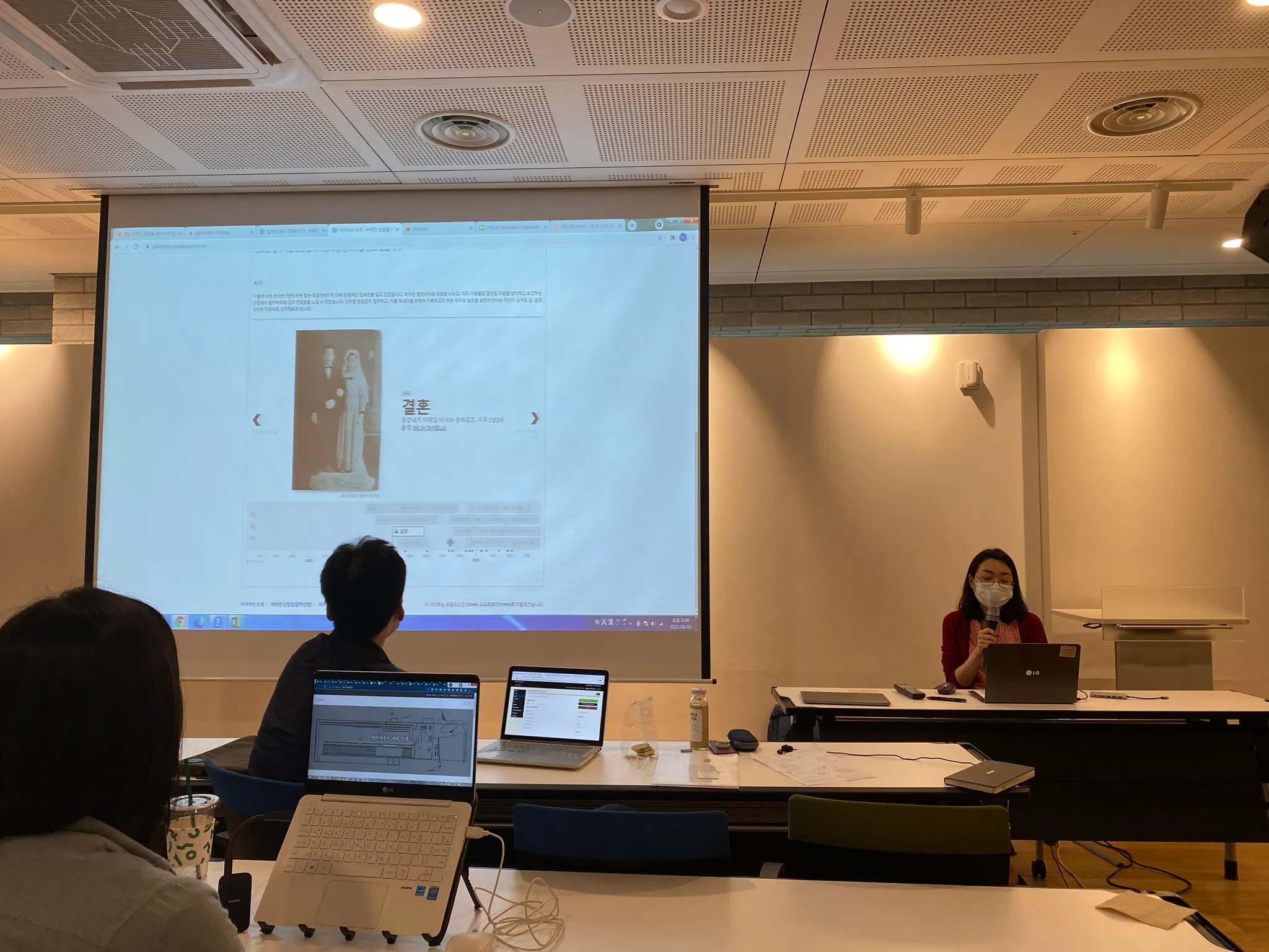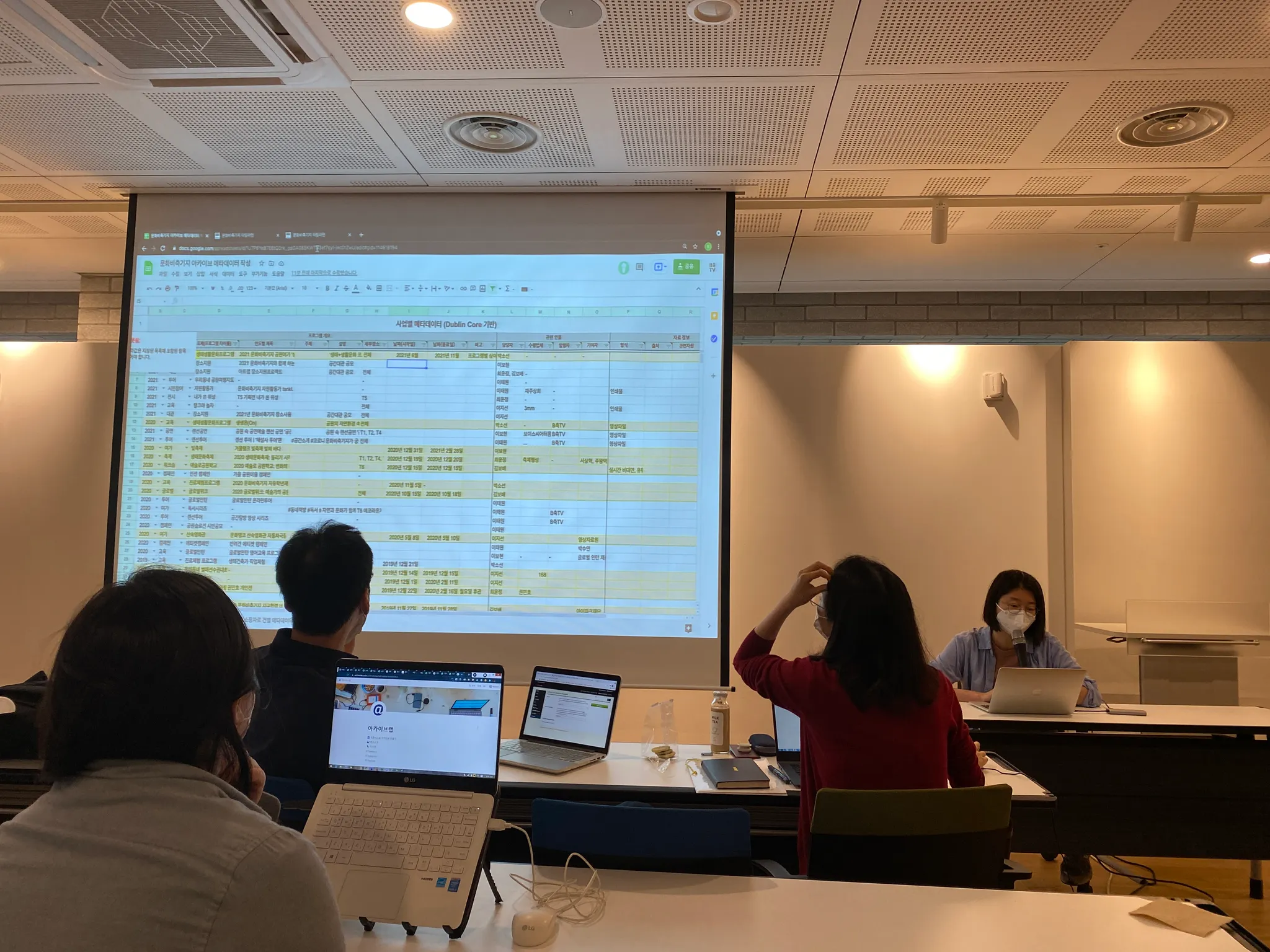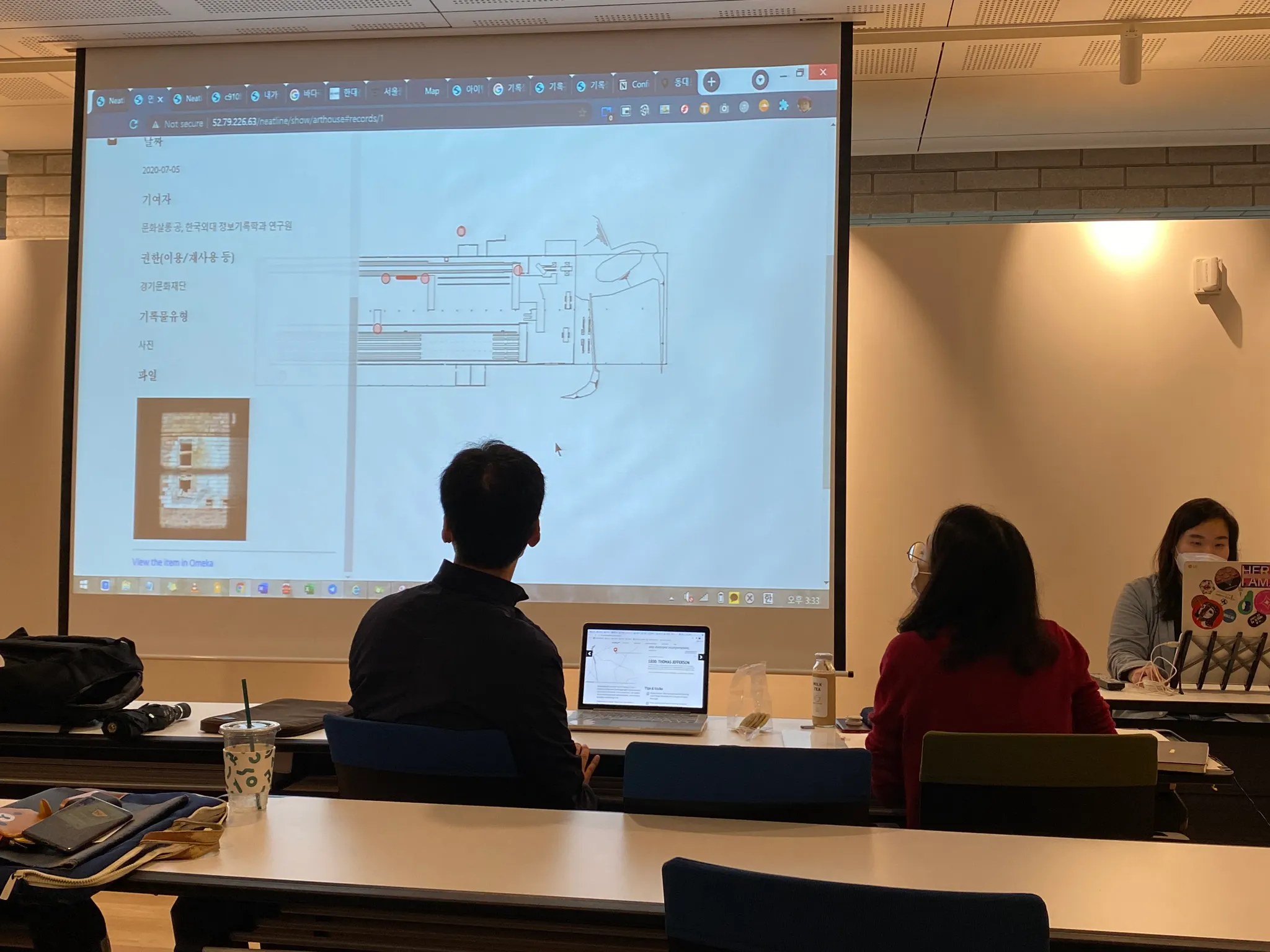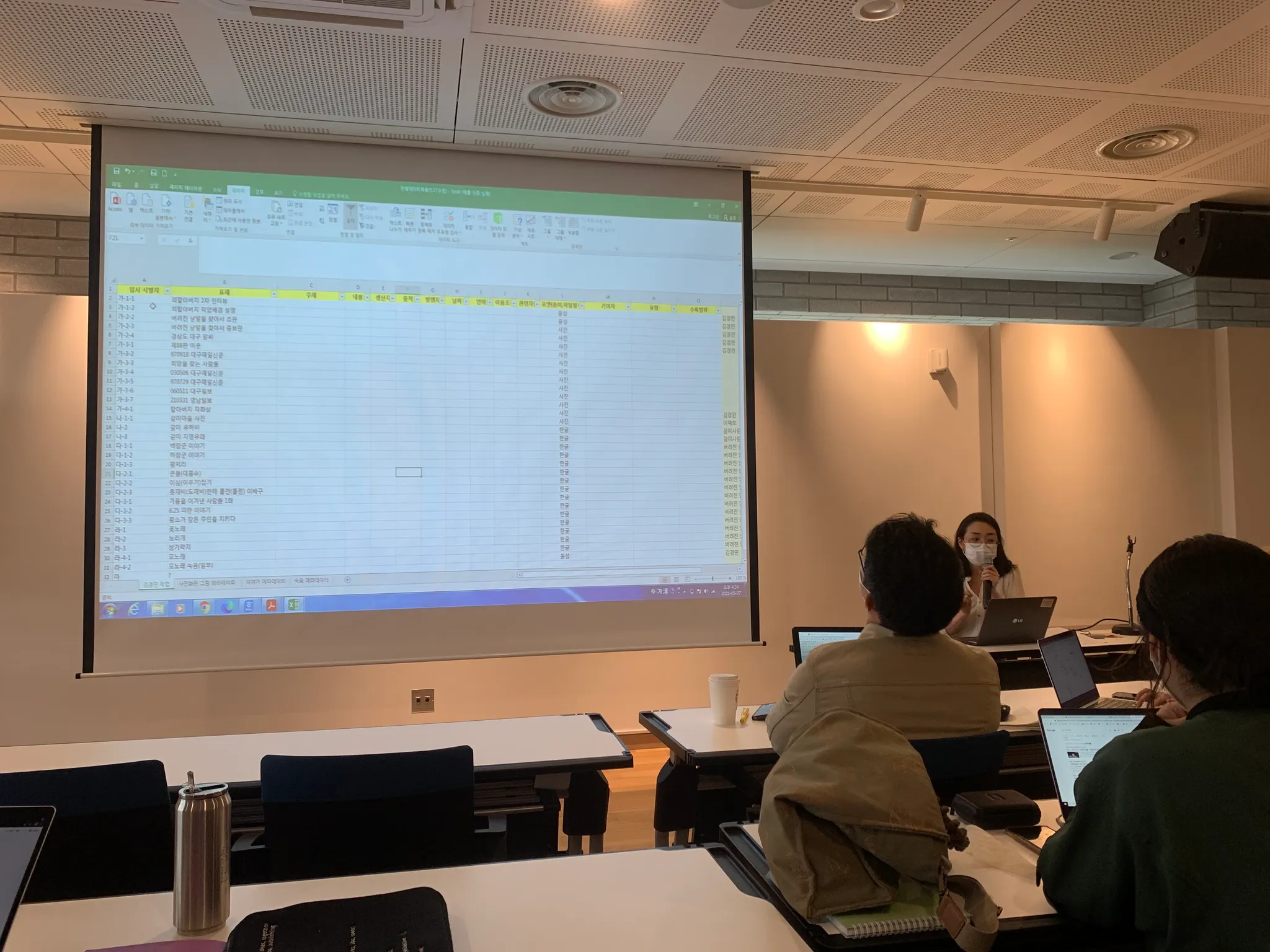 서울기록원 작업자 두 분이 청강하고 계십니다. 한 분은 로컬리티 이미지를, 한 분은 네이버 뉴스의 부고를 아카이빙해보고 있습니다.