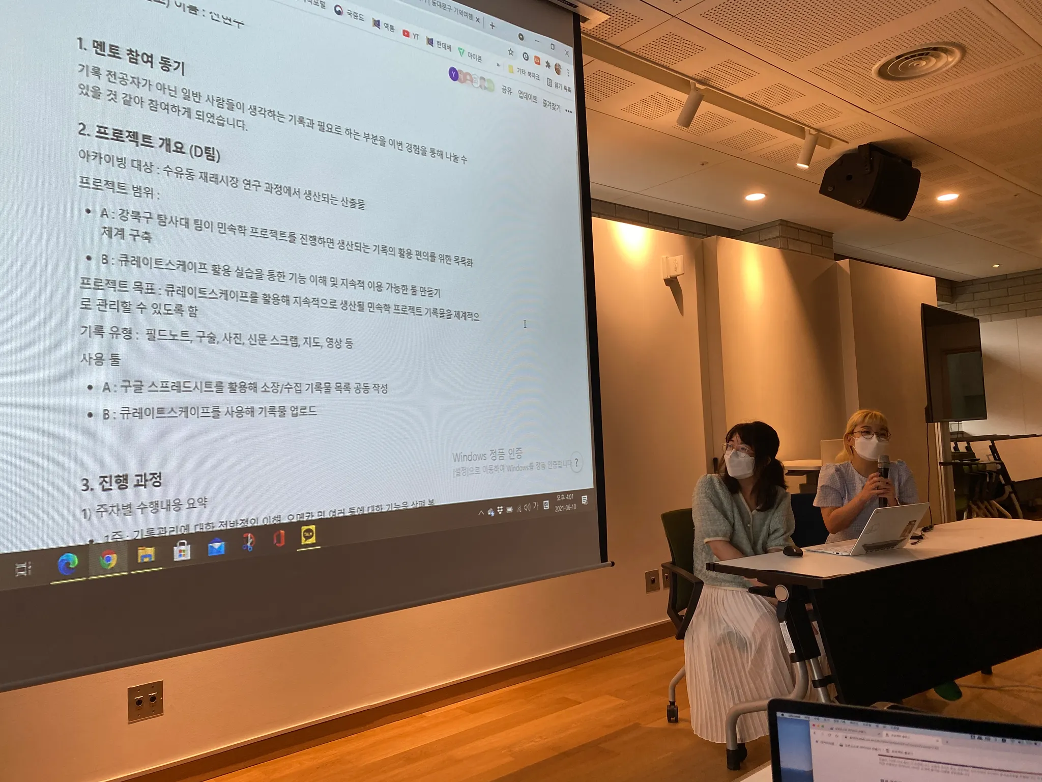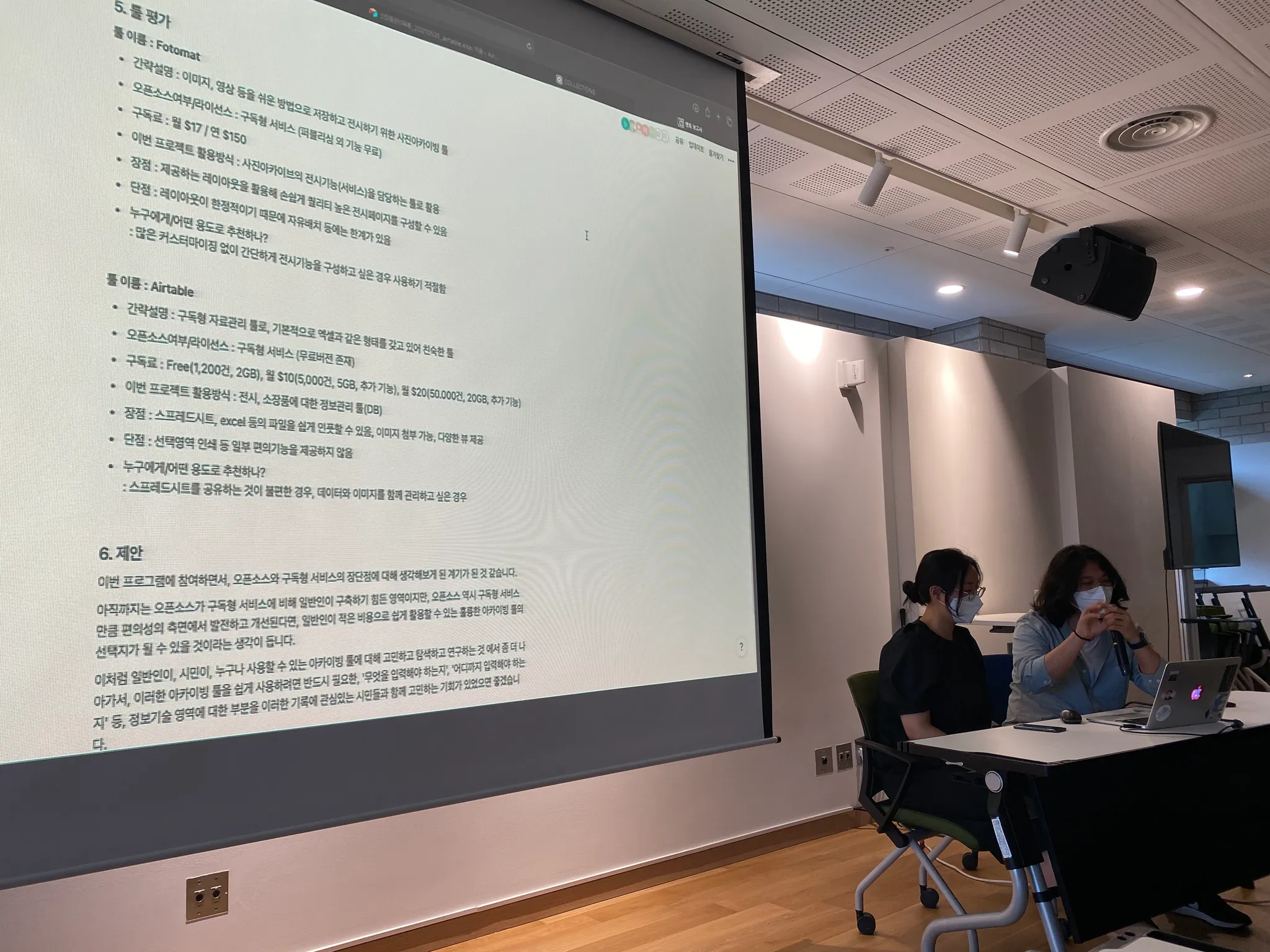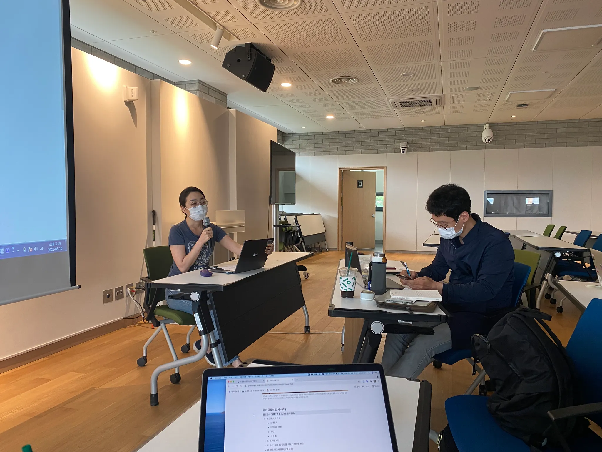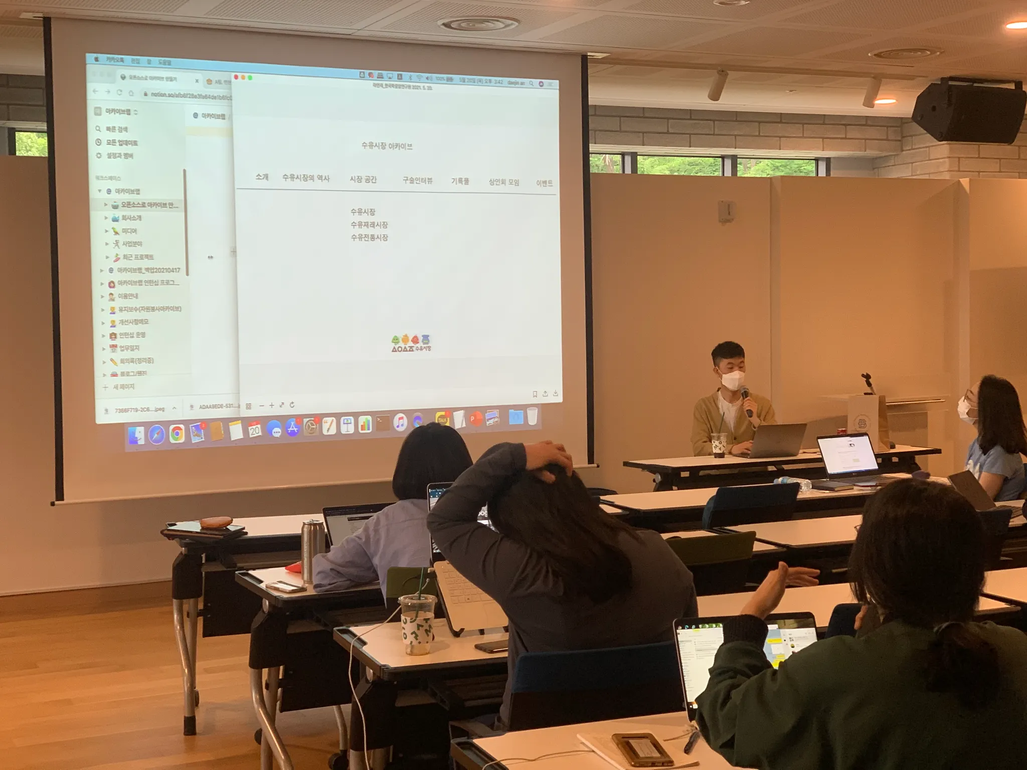 서울기록원 작업자 두 분이 청강하고 계십니다. 한 분은 로컬리티 이미지를, 한 분은 네이버 뉴스의 부고를 아카이빙해보고 있습니다.