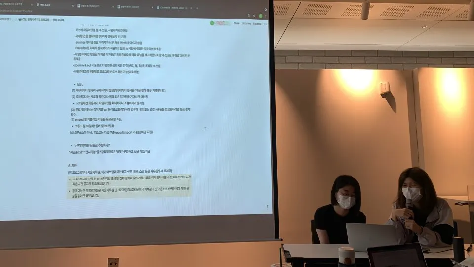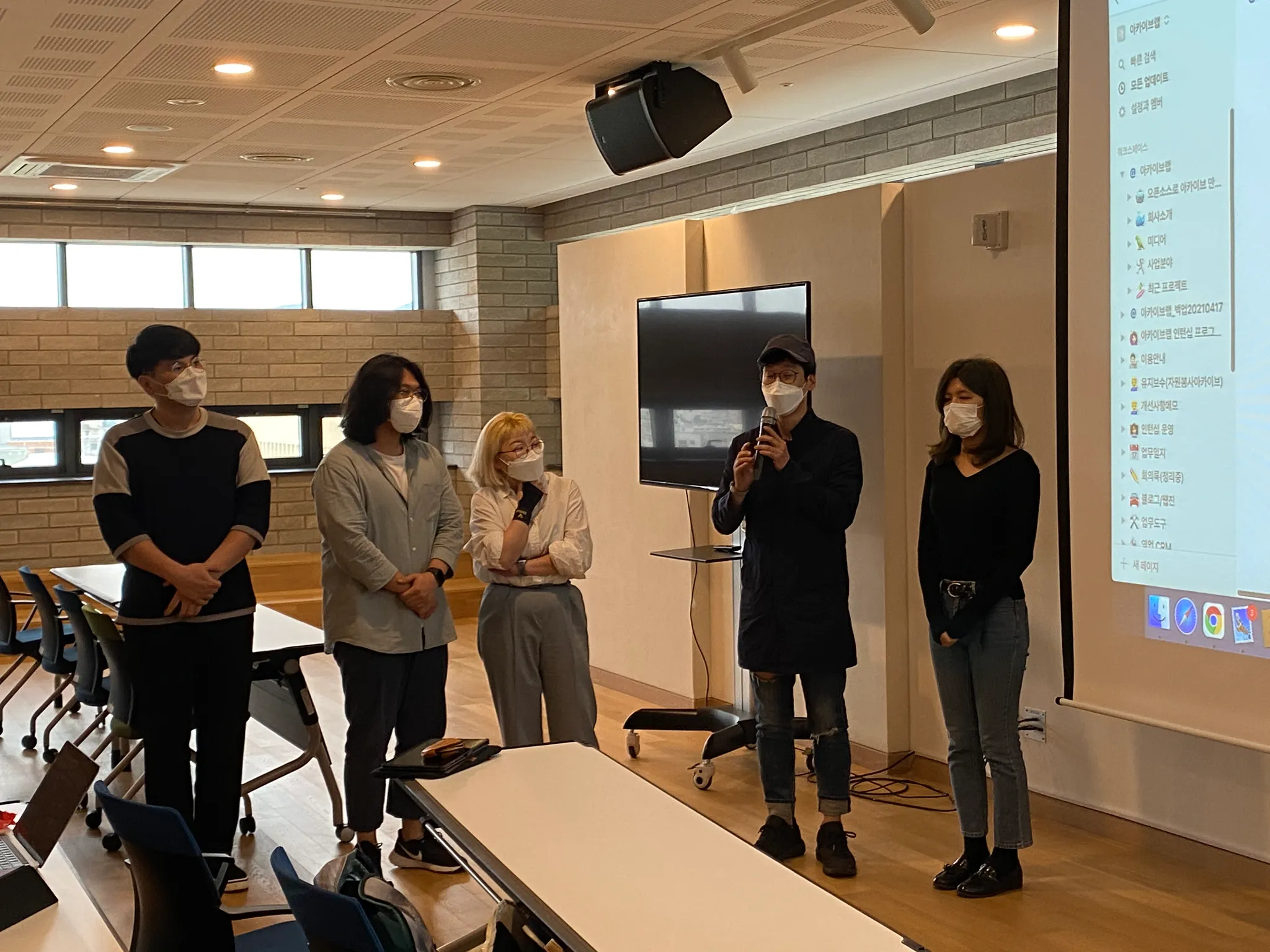 오늘도 1시에 다섯 팀이 다 모였습니다. 오늘은 2시간 동안 프로젝트 마무리하고 3시부터 결과공유회를 진행합니다. 각 팀별 남은 작업 수행하고 아카이브 사이트 소개에 들어갈 내용을 보완했습니다.