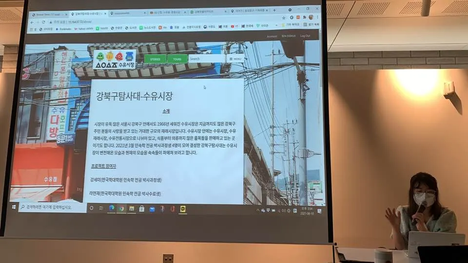 D팀. 좌측부터 한국학중앙연구원의 민속학 박사과정 세 분이 참석하셨습니다. 수유동 재래시장의 구술과 주민들 기록을 Curatescape로 만들기로 했습니다.