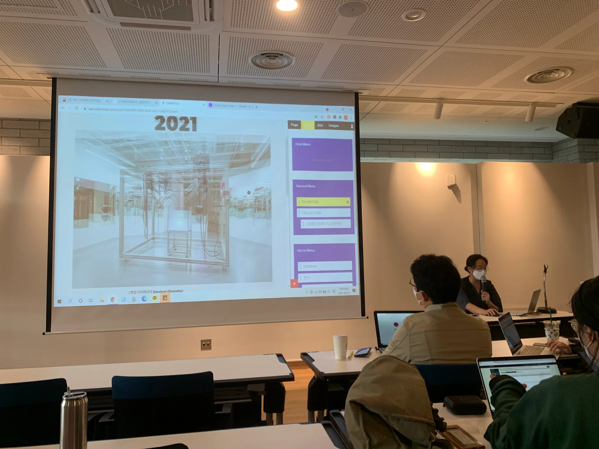 E팀 진행상황 발표 - 사진아카이브 툴인 Fotomat에 두 개 페이지를 만들고 재단의 주요 전시 이미지를 배열했습니다. Fotomat은 연간 최저 구독료가 20만원이지만 디자이너와 개발자가 투입되는 프로젝트보다 저렴하게 괜찮은 비주얼을 뽑아낼 수 있습니다.