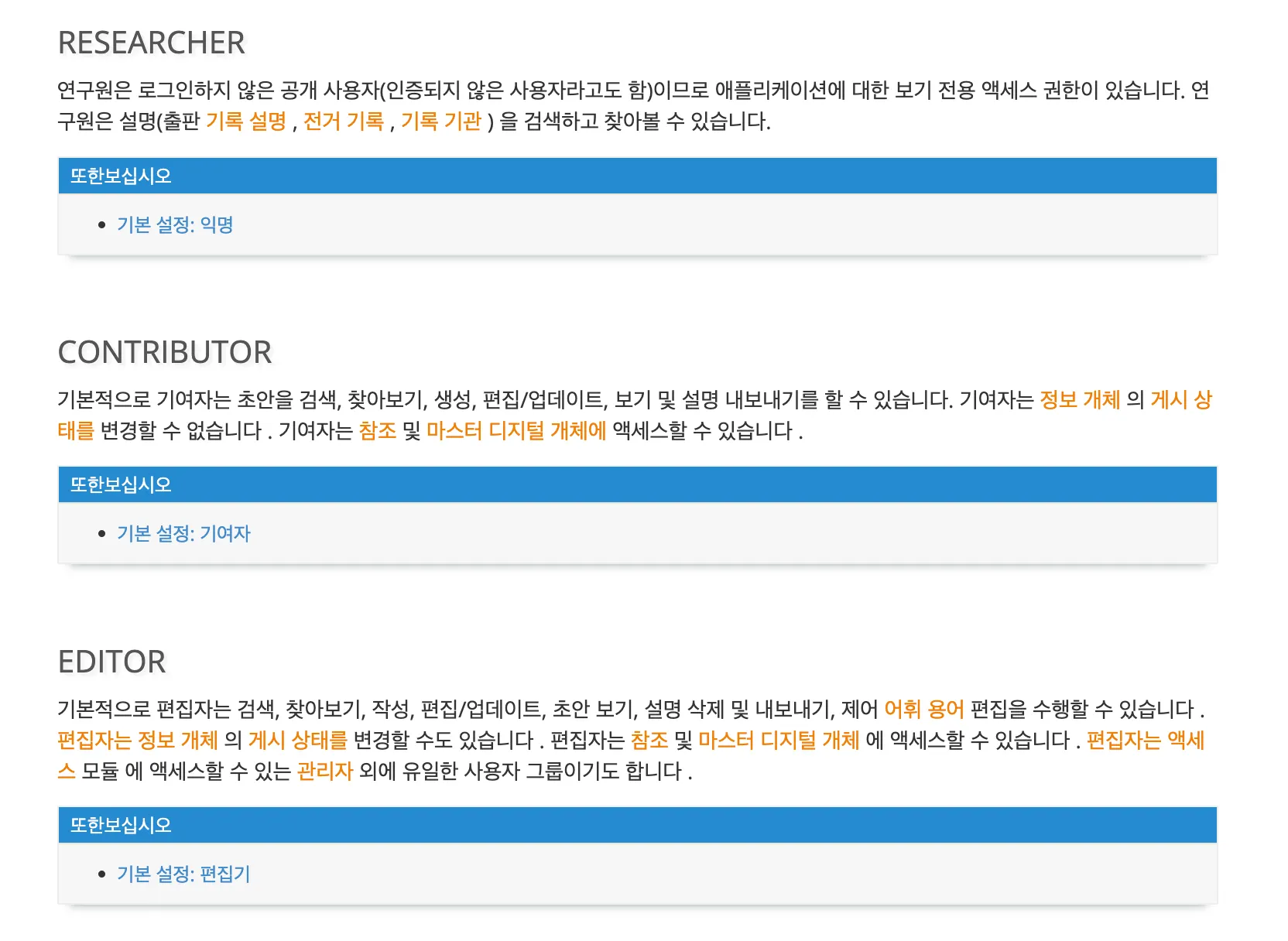 시스템 내 기준값(용어집)을 해당 아카이브에 맞도록 1개 이상 변경 Taxonomies
