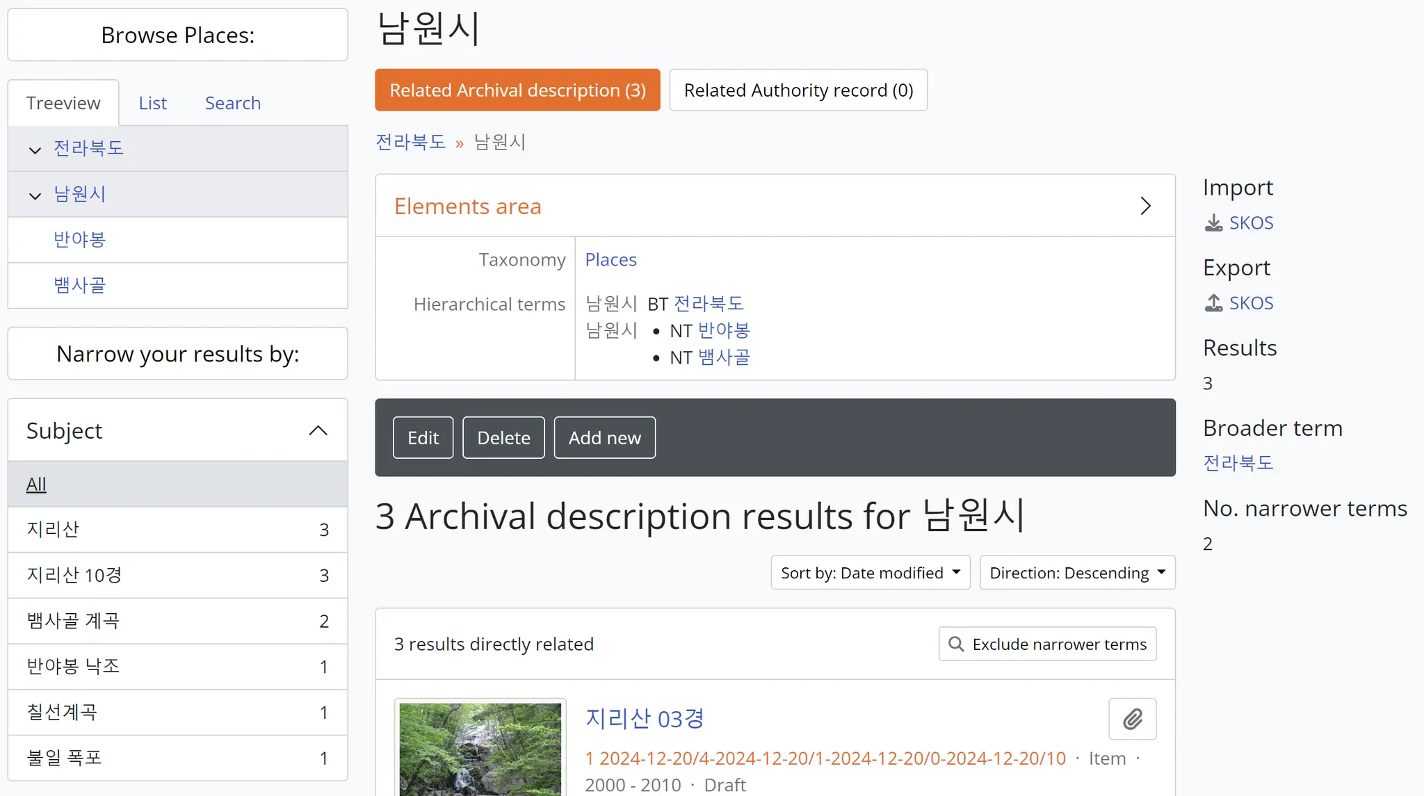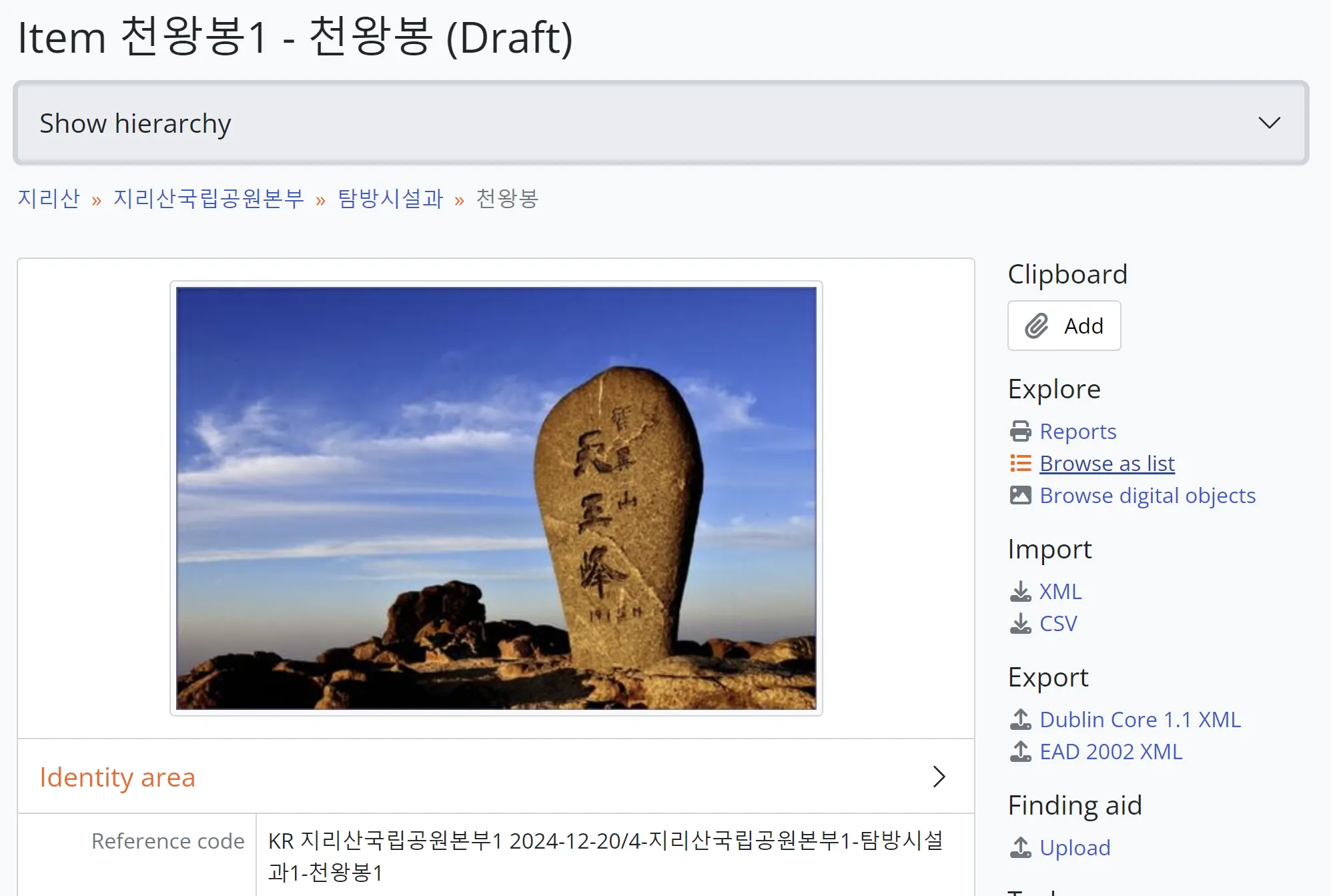 ISAD(G)로 작성된 기록물 기술서를 ‘Physical Storage’와 연결하기 more > Link Physical storage