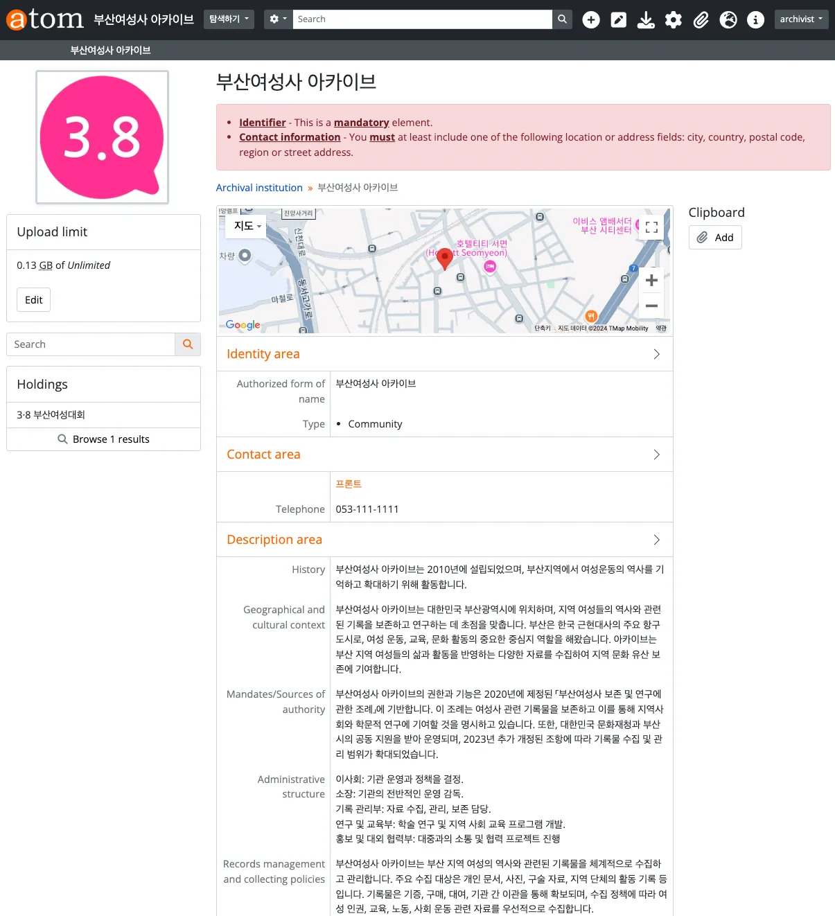 기록소장기관 정보 기술하기 Archival Institution ISDIAH