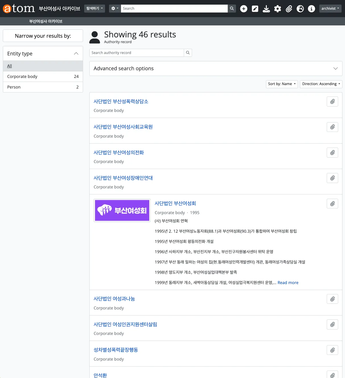 전거레코드 3종 이상 만들기(아래 항목 중 선택. AtoM 기능을 활용하고 왜 그 기능을 썼는지 설명)