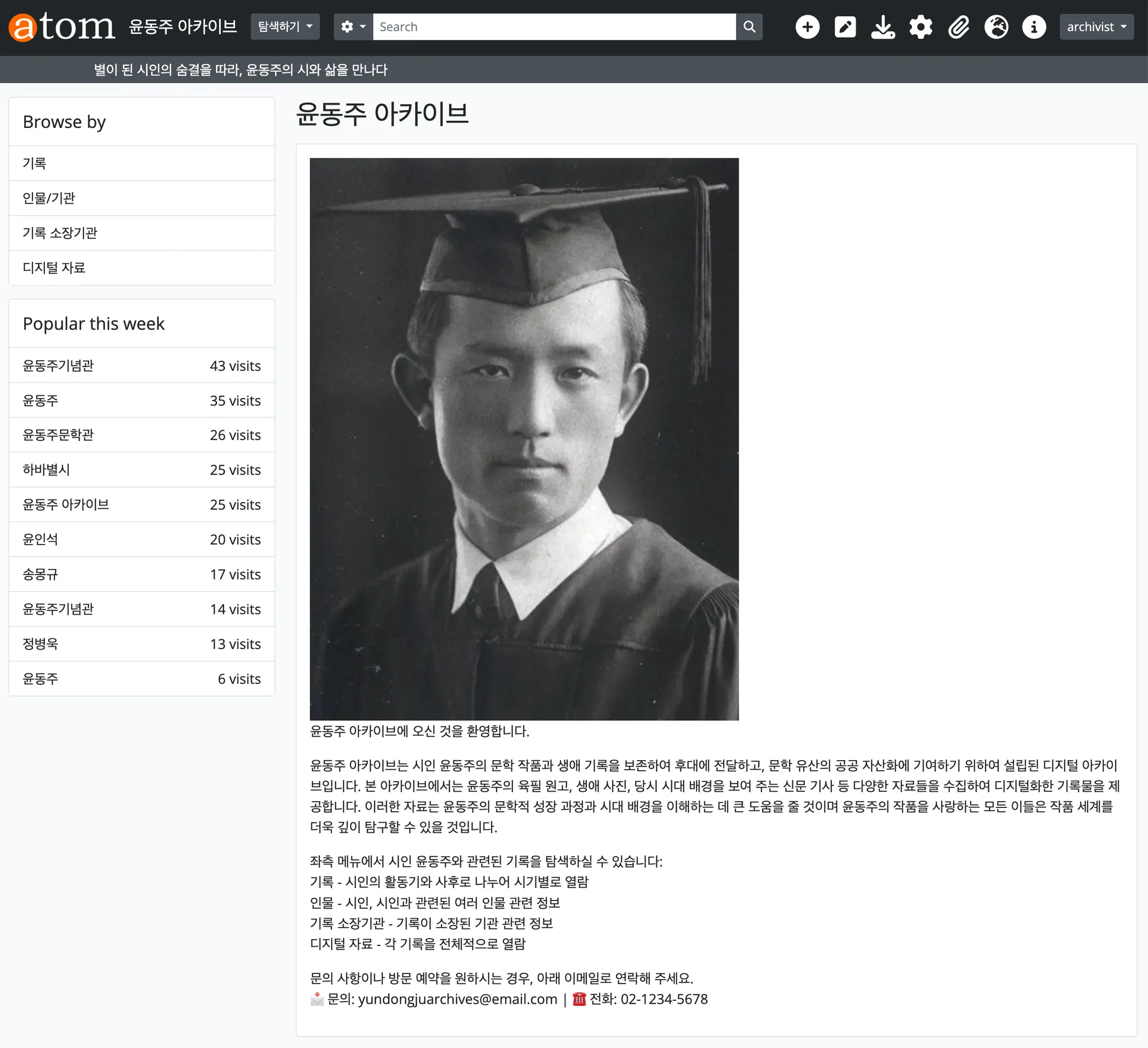 사료 수집 기관: 윤동주 아카이브