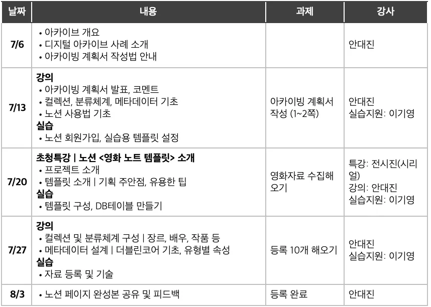 1강. 아카이브 개요, 사례, 계획서 작성 (7/6)