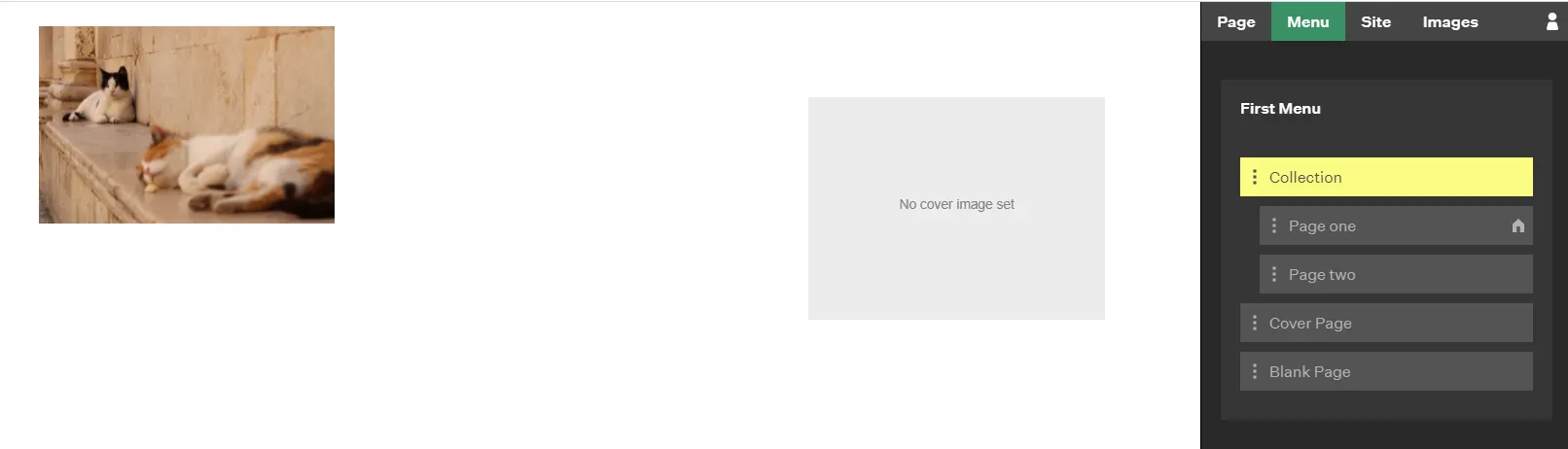 Collection에 속하는 페이지는 Menu 항목에서 드로그앤 드롭을 통해 설정할 수 있습니다.