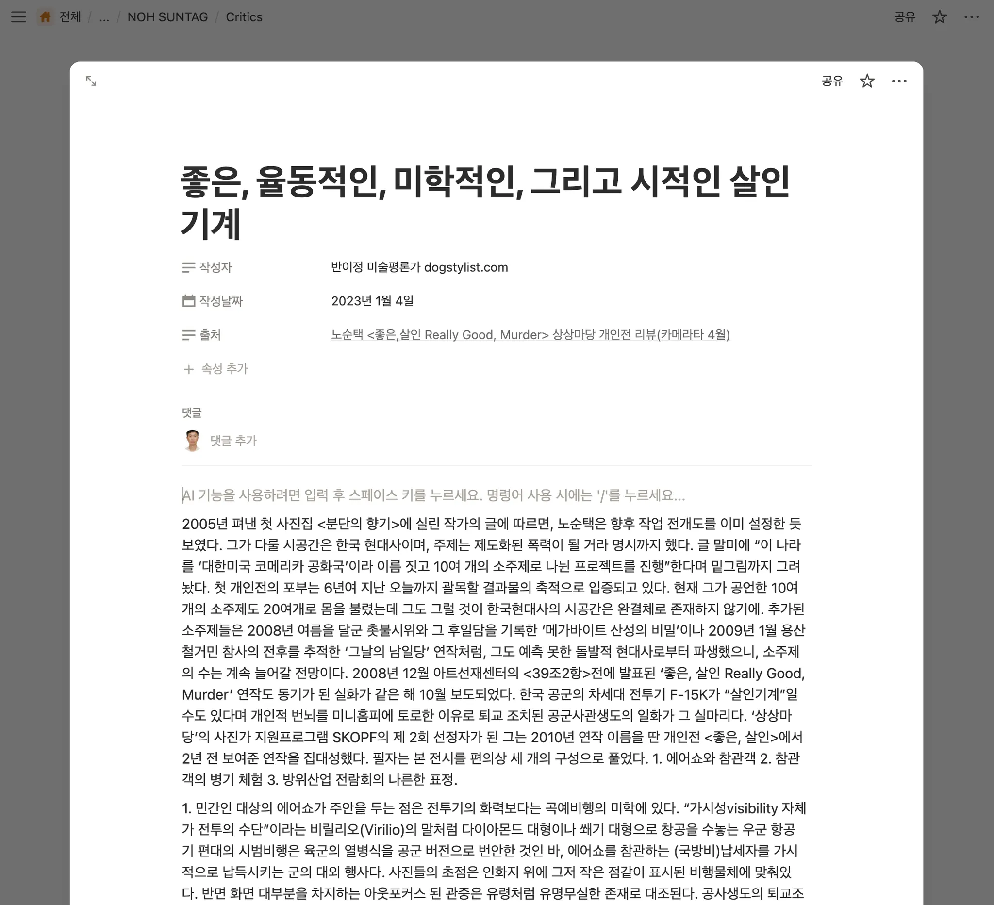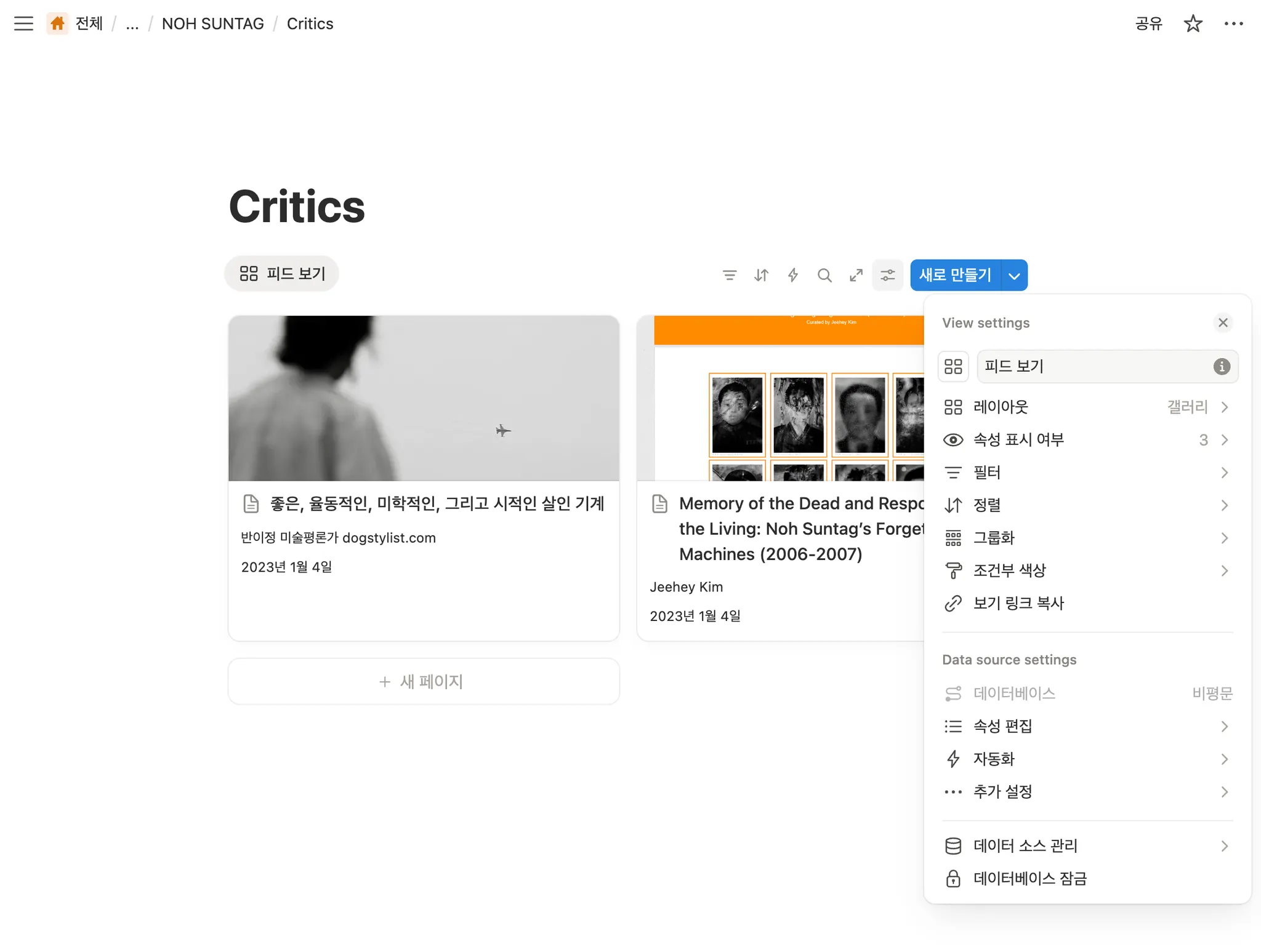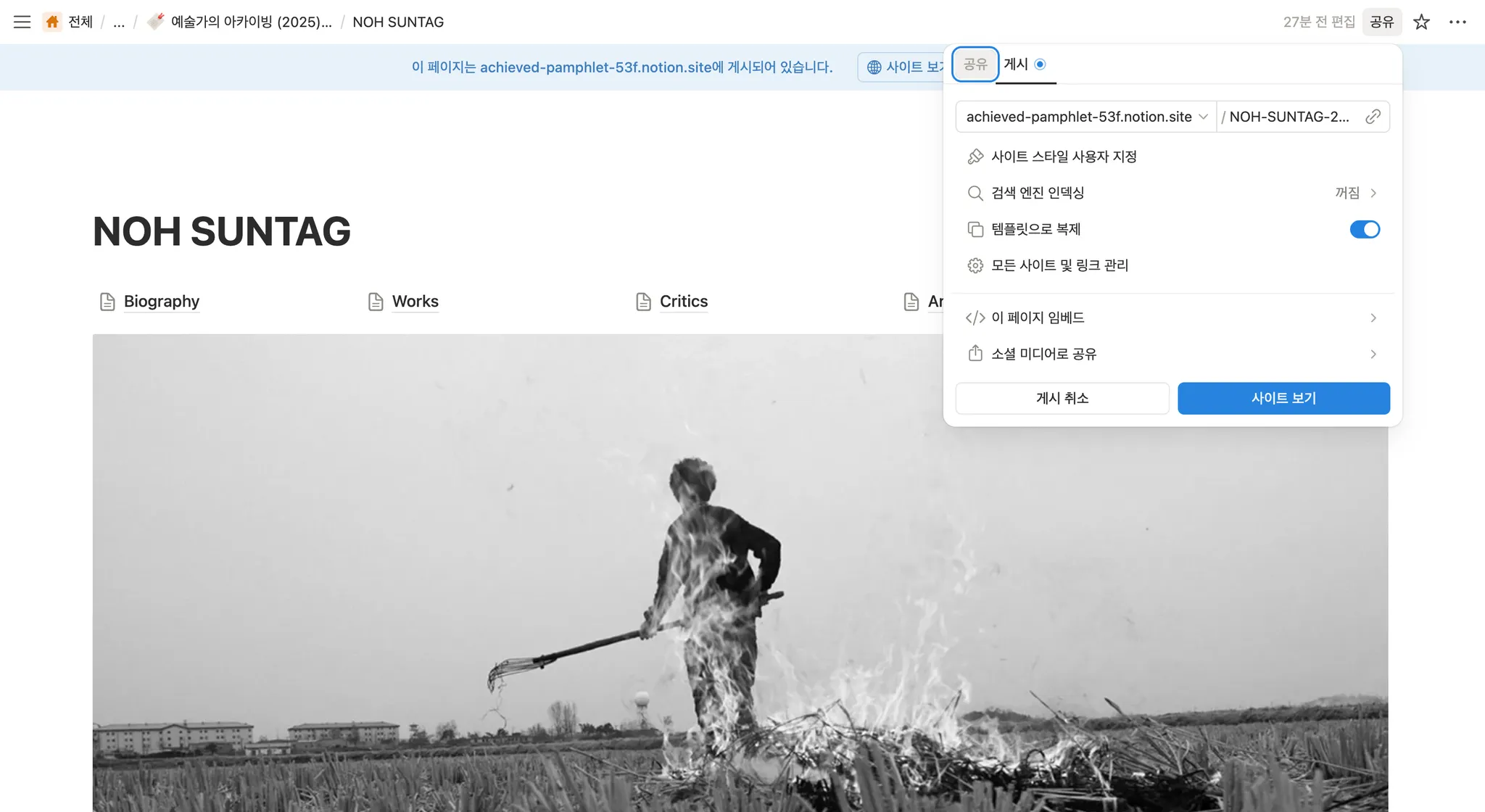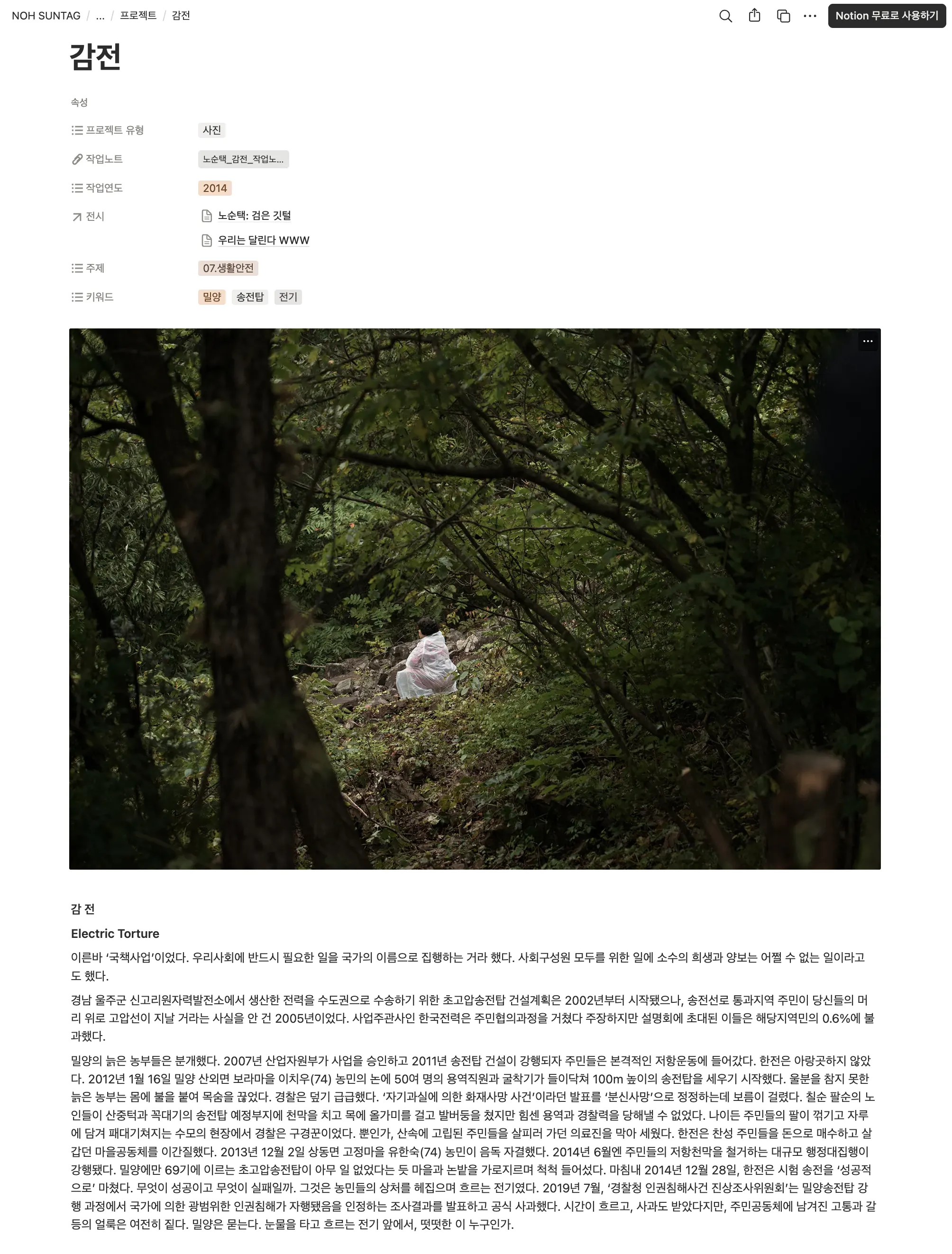 노순택 작가의 포트폴리오 사이트를 노션으로 옮겨 보겠습니다.