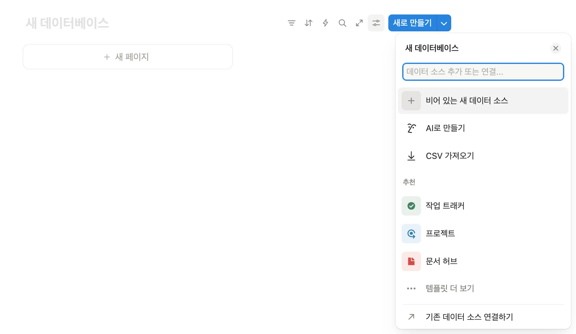 2. '비어 있는 새 데이터 소스' 선택