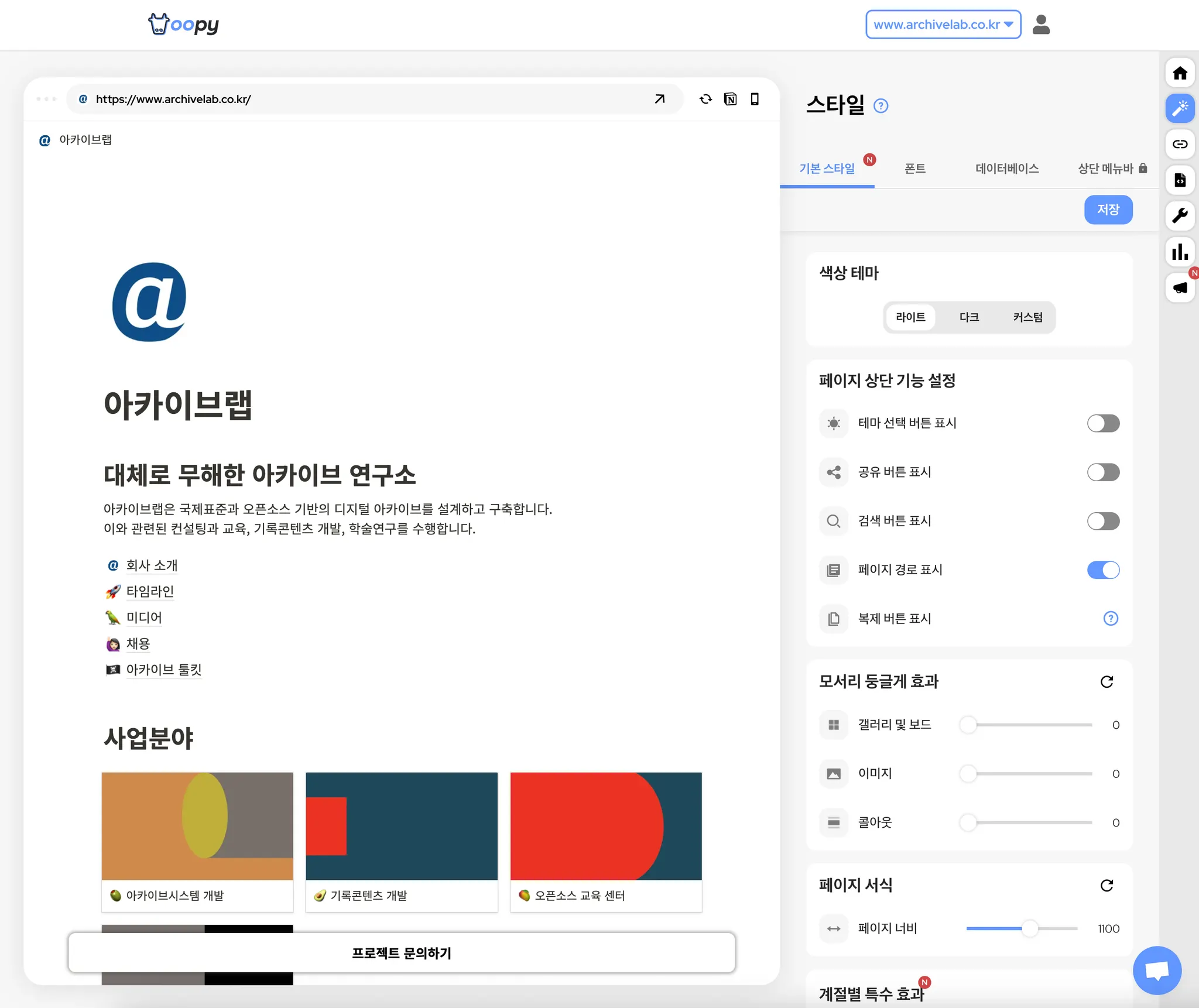 도메인 설정 및 디자인 커스터마이징