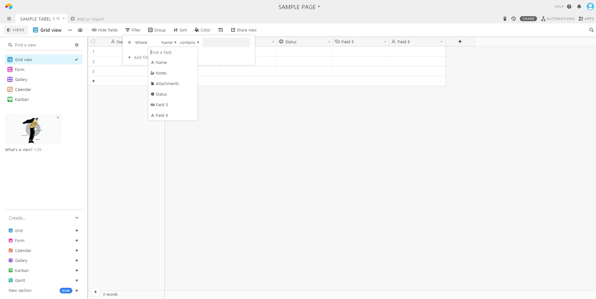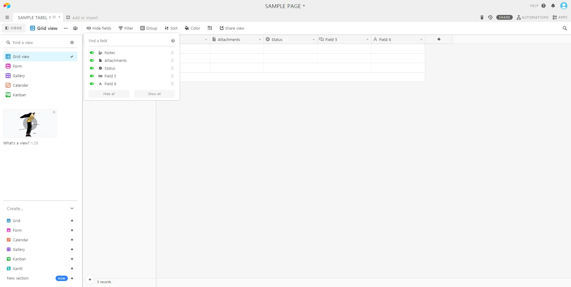 비슷한 형태의 자료관리 툴인 구글 스프레드시트와 다르게, 여러 형태의 뷰(view)기능을 제공하며, 필요에 따라 적절한 뷰를 선택하여 활용할 수 있습니다.