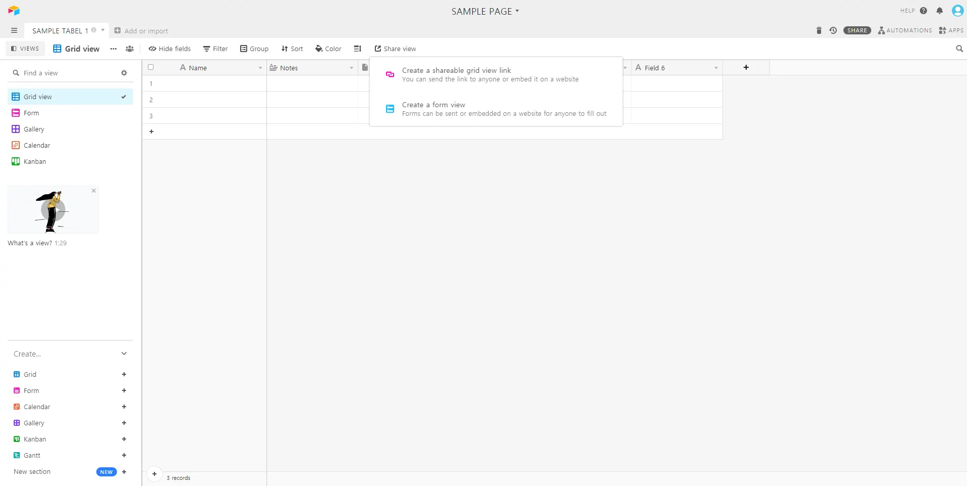 Share view 기능을 활용하여 작성한 table을 공유할 수 있습니다. 공유단위는 base 단위를 기본으로 하며, 공유받은 이는 기본적으로 공유하는 table에 관리자가 보이도록 설정한 필드만을 볼 수 있습니다.