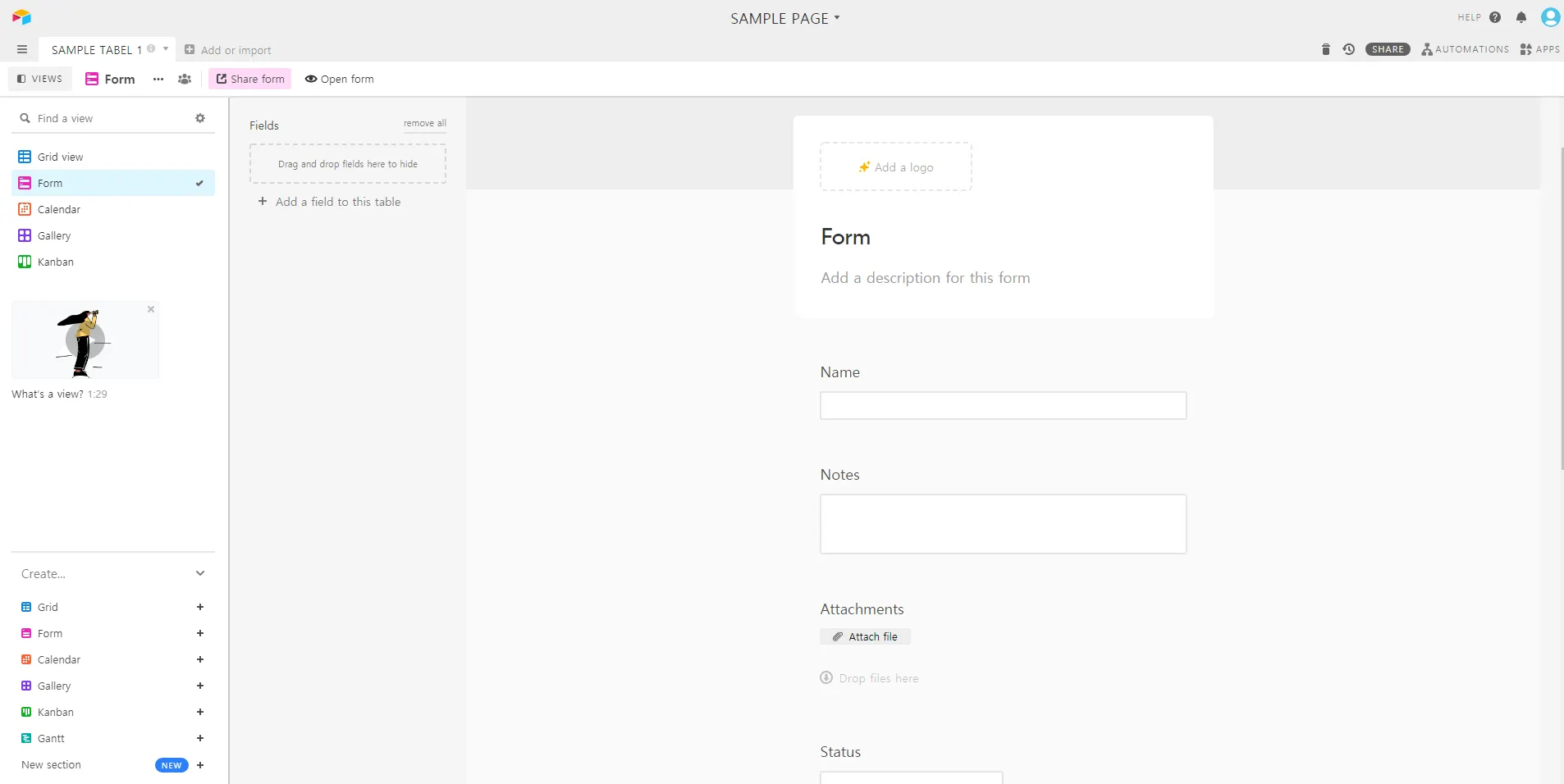 폼 뷰 기능을 활용해 불특정 다수로부터 테이블을 공개하지 않고 데이터를 수집할 수 있습니다.