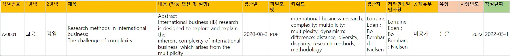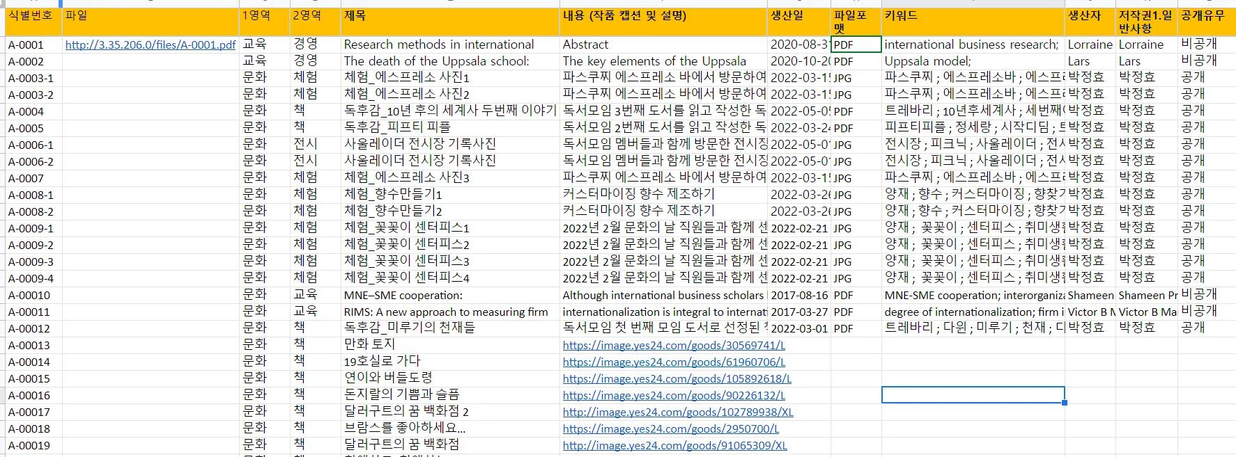 엑셀로 메타데이터 항목에 따라 아이템 정리