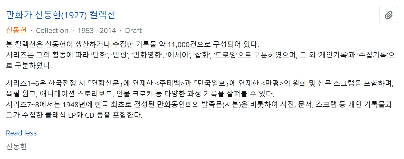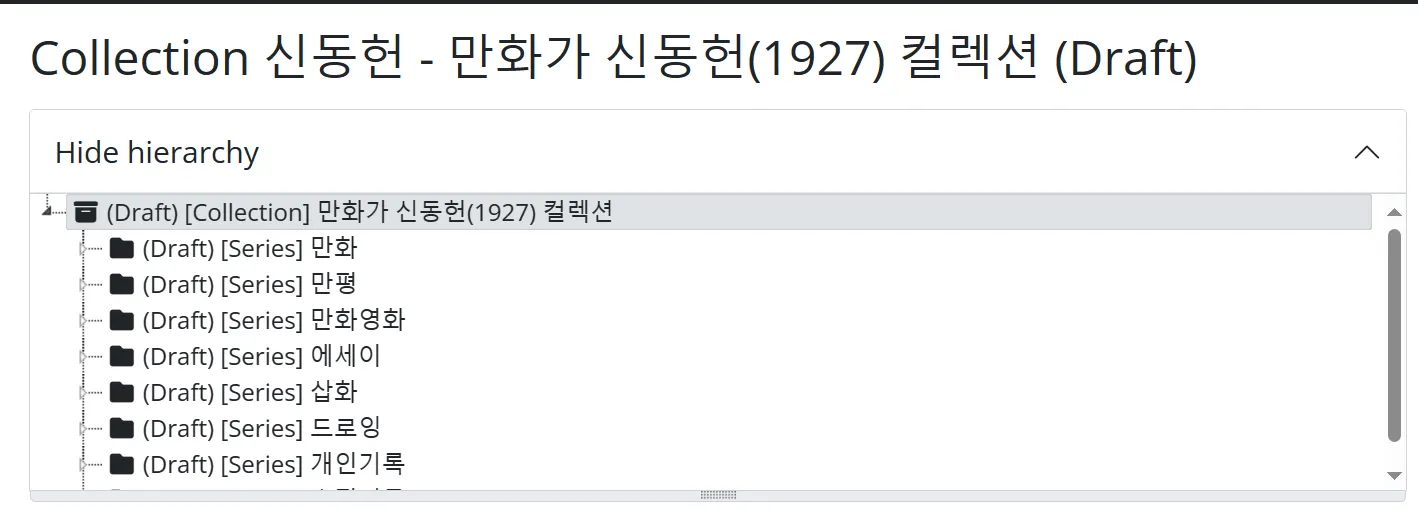 AtoM 기능을 최대한 활용하여 소장 컬렉션을 기술한다.