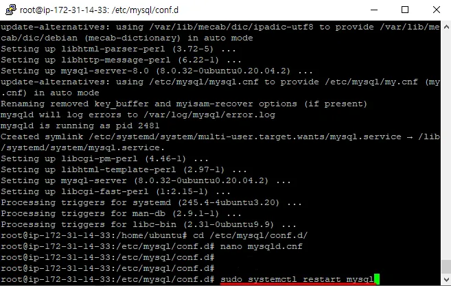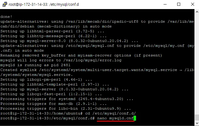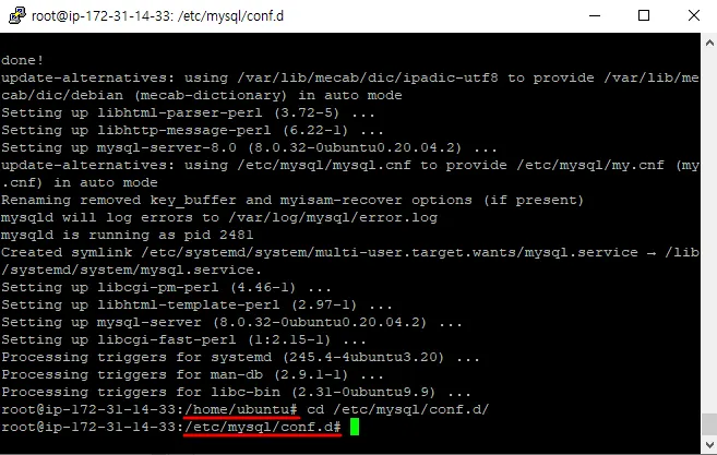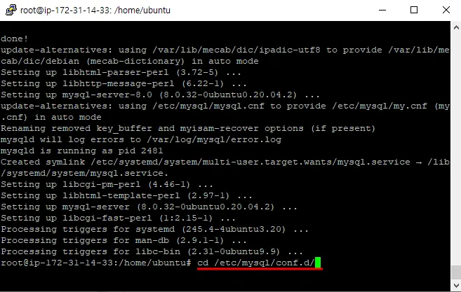 mysql 환경설정 파일을 생성할 경로로 이동했습니다.