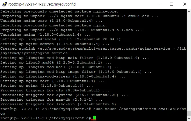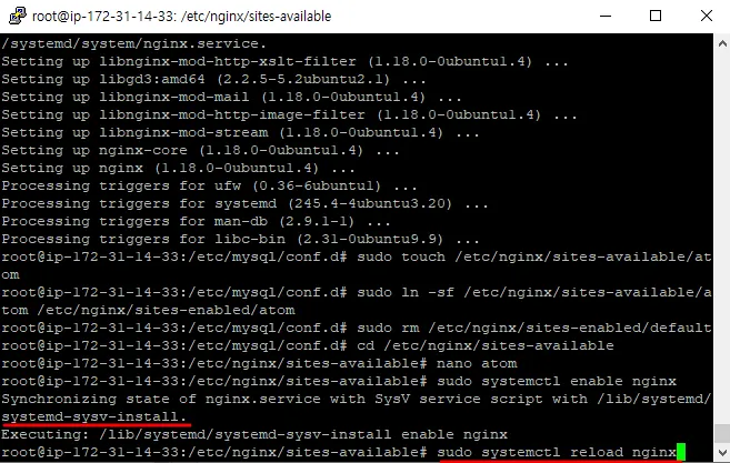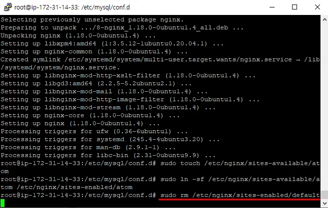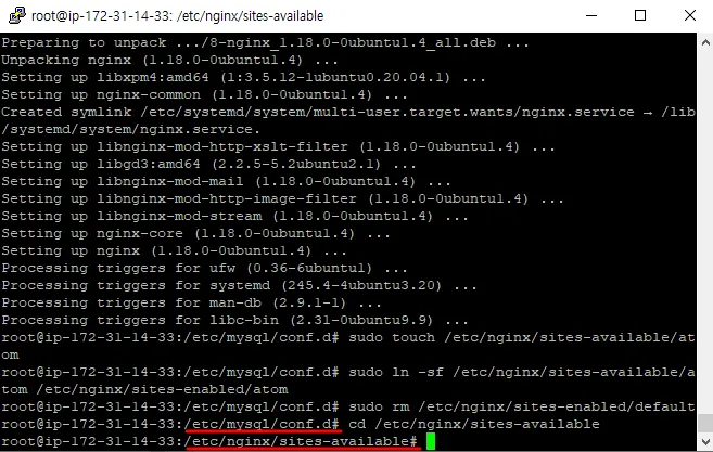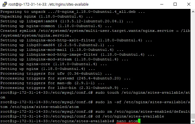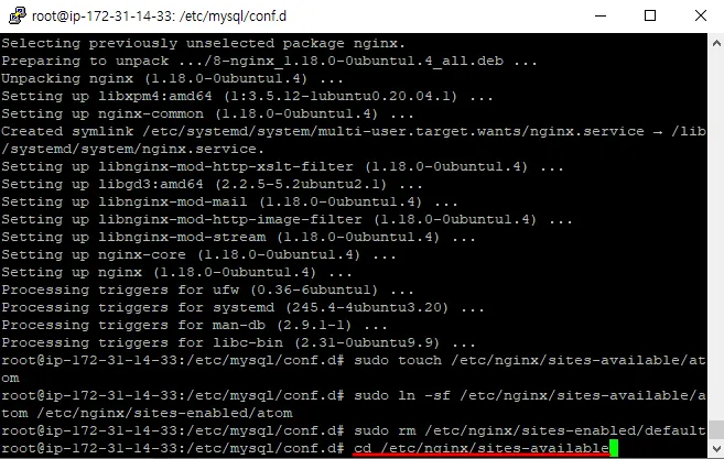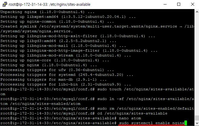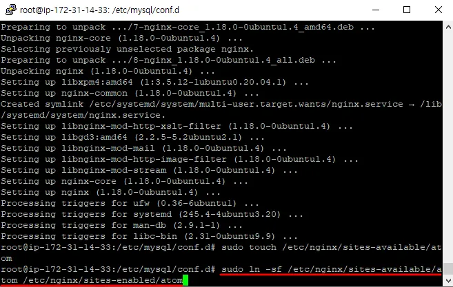 sudo ln -sf /etc/nginx/sites-available/atom /etc/nginx/sites-enabled/atom