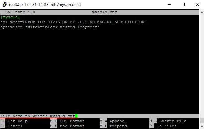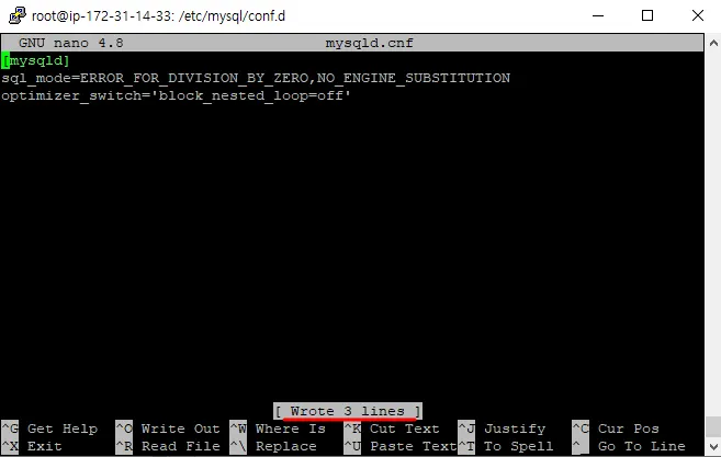 위와 같은 문구가 출력되면 성공적으로 입력된 것이므로, ctrl + x 를 입력하여 닫아줍니다.