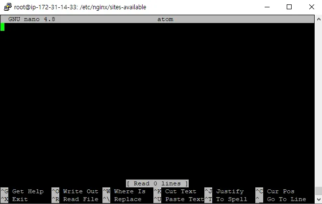 경로가 위와 같이 변경되었는지 확인하고, nano 에디터를 사용해 atom 블록을 열어줍니다.