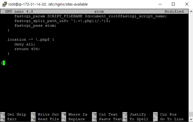 설치가 완료되면 Nginx에 AtoM을 설치하기 위한 새 블록을 추가합니다.