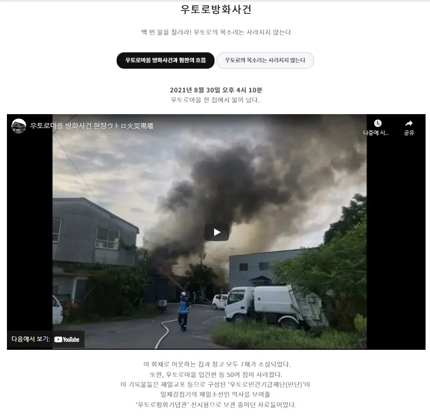 -우토로에 발생한 혐한 방화사건과 혐오범죄의 흐름을 소개