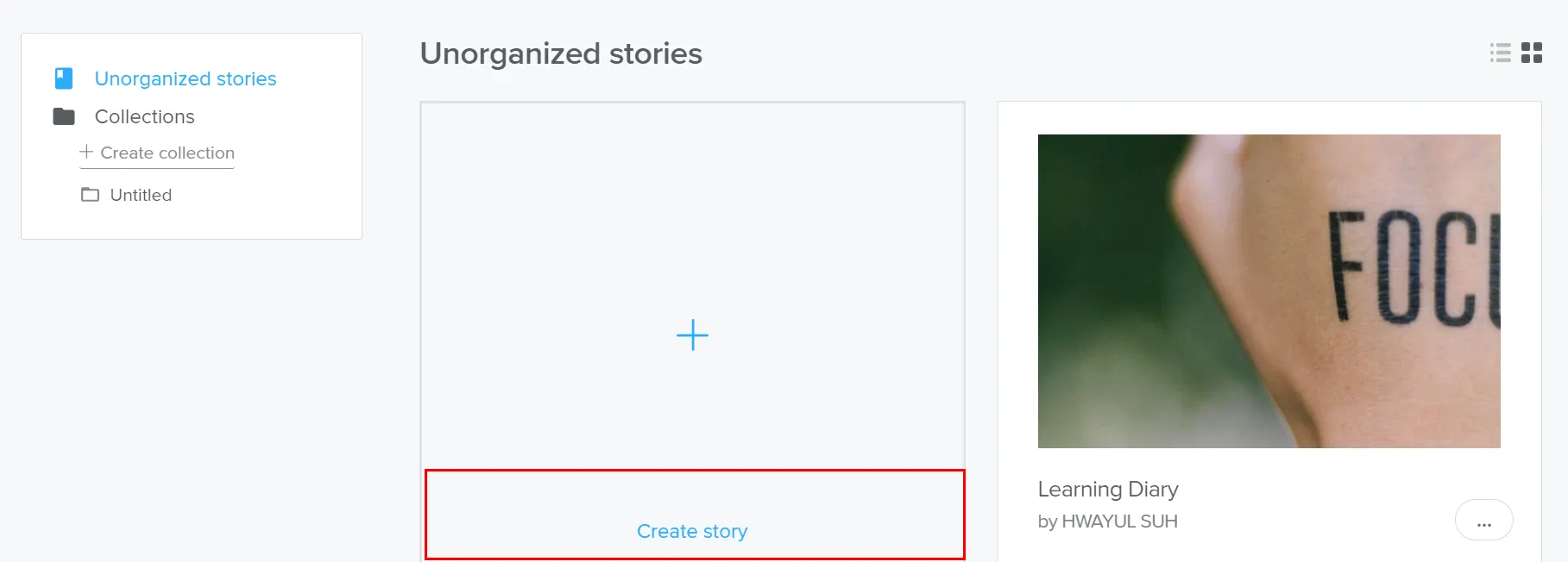 대시보드에서 [Create Story]를 선택한다.
