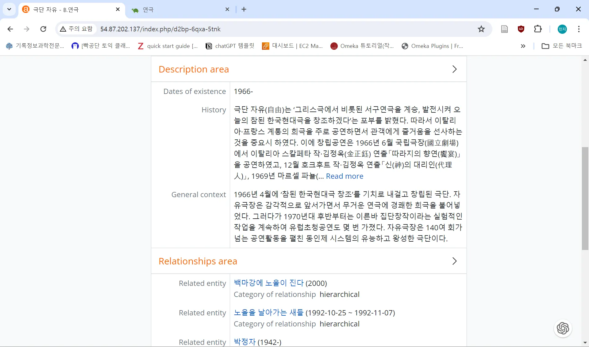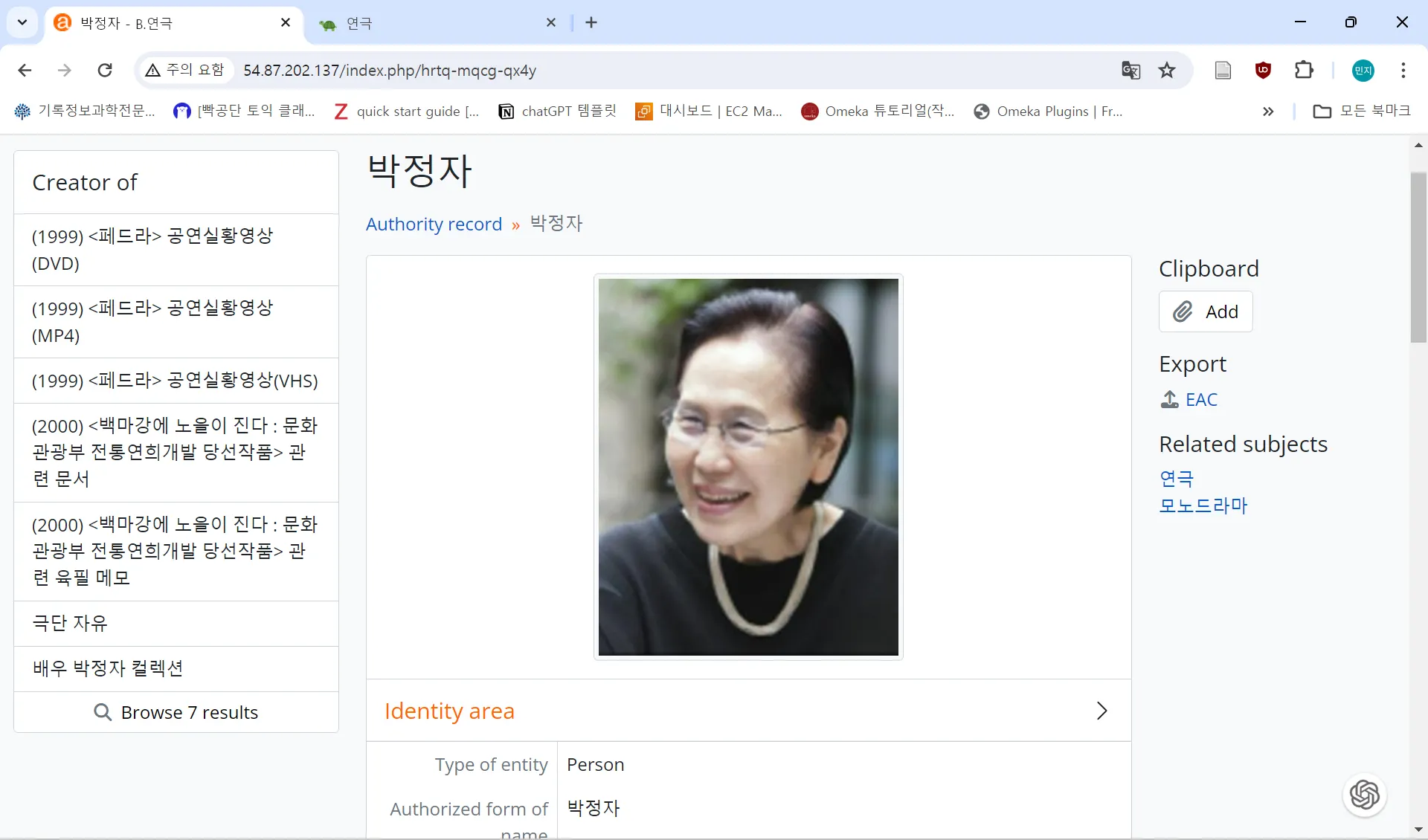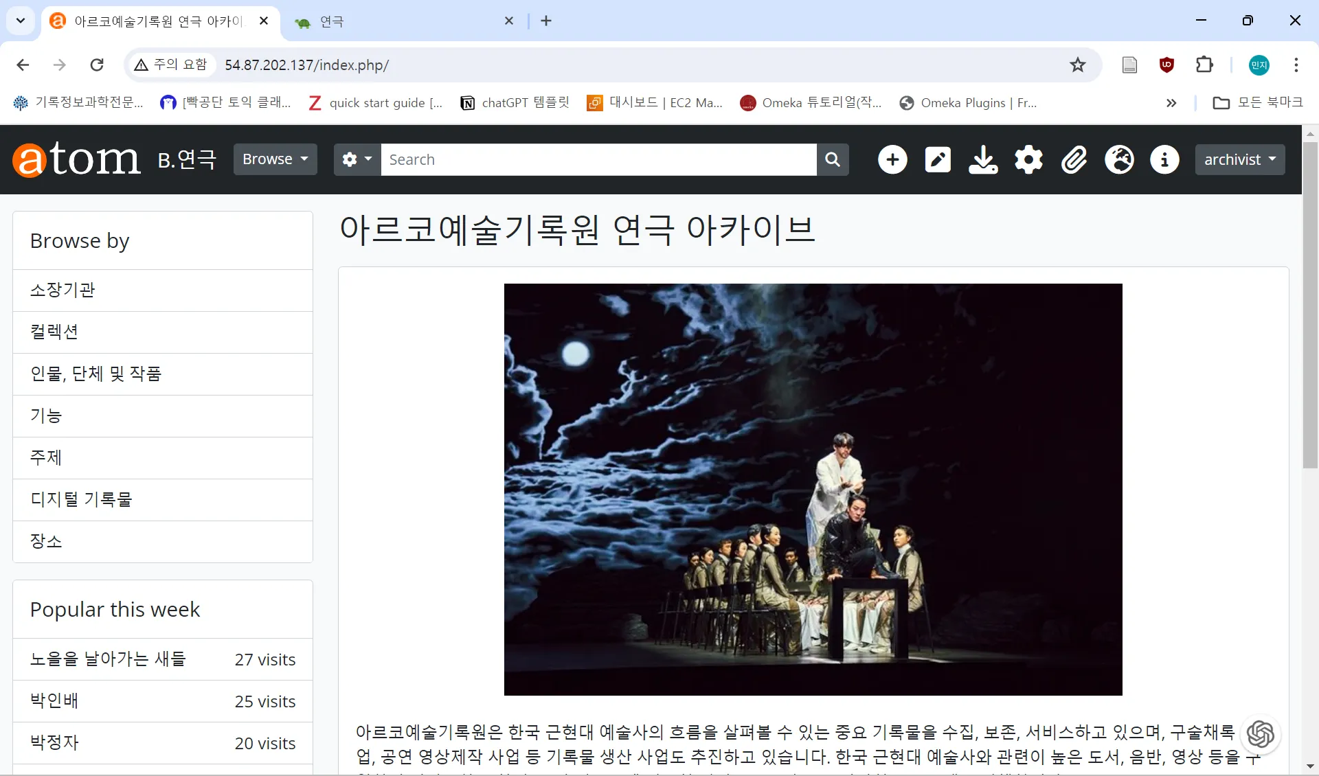 ex. AtoM 기능을 최대한 활용하여 소장 컬렉션을 기술한다