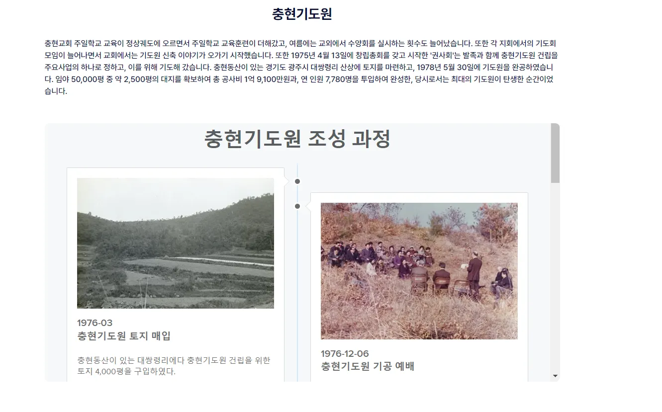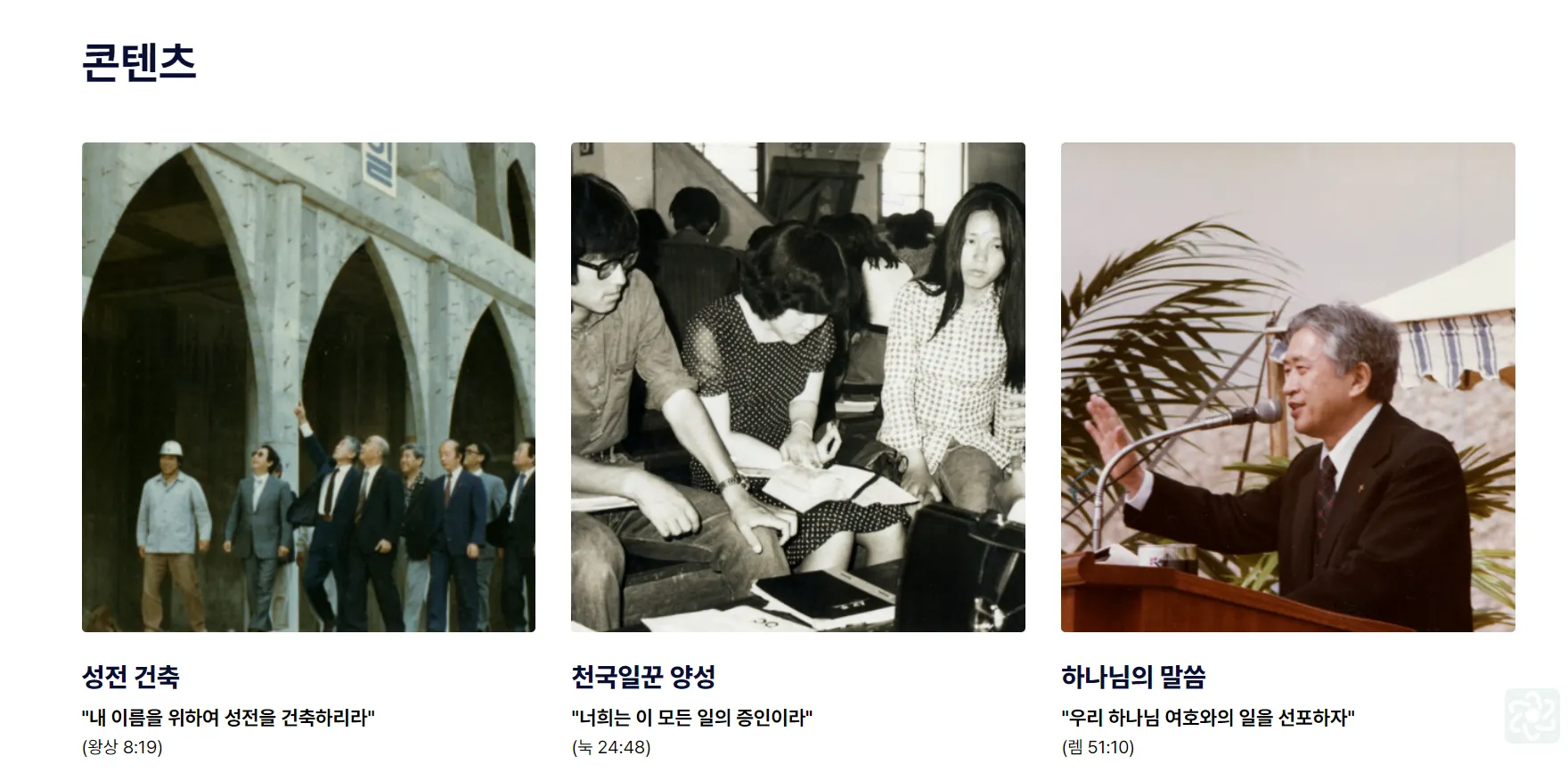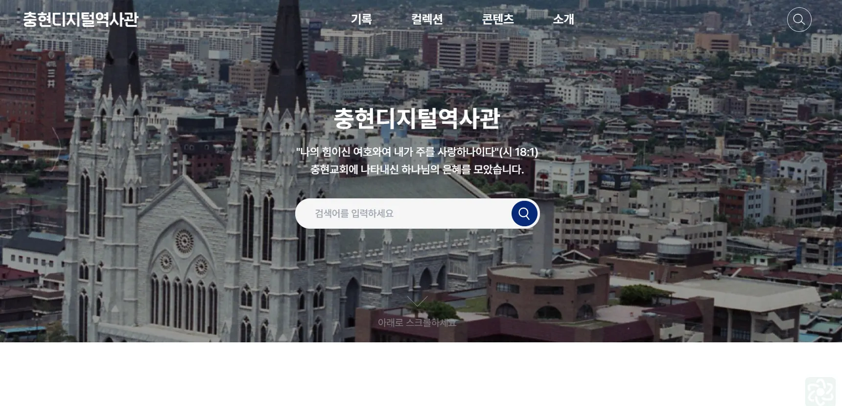 충현디지털역사관에서는 충현교회와 관련된 사진, 문서, 간행물, 영상, 음성, 박물 등의 다양한 기록 7,025건을 선별, 분류, 정리, 디지털화여 서비스하고 있습니다.