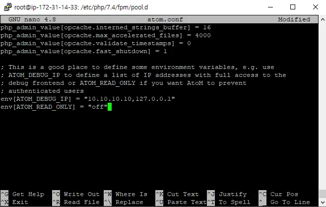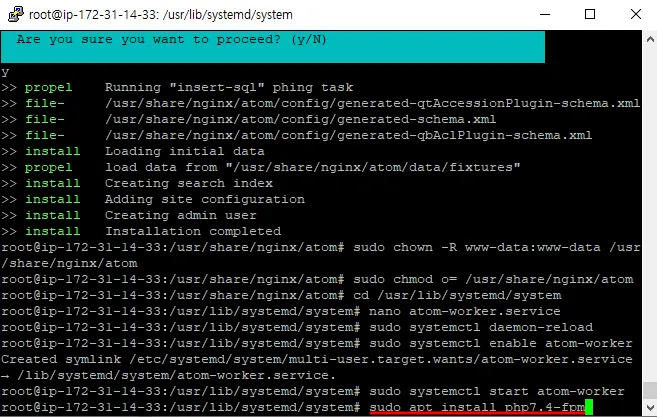 설치 후, PHP 풀에 AtoM 환경을 추가합니다. 우선 설정을 위해 경로를 변경합니다.