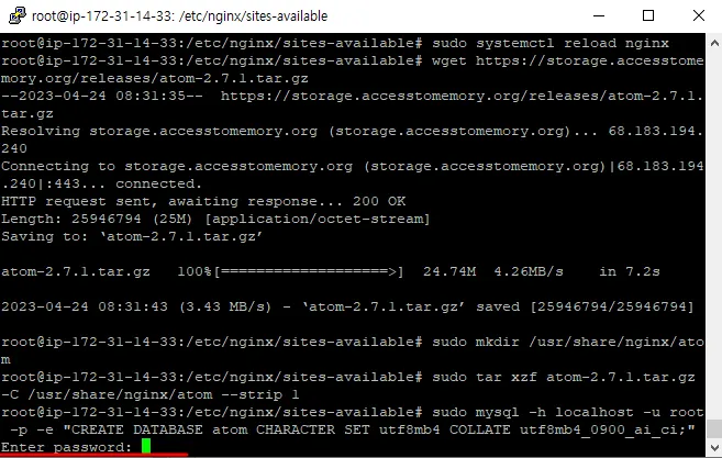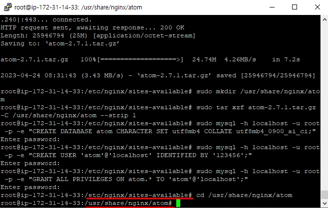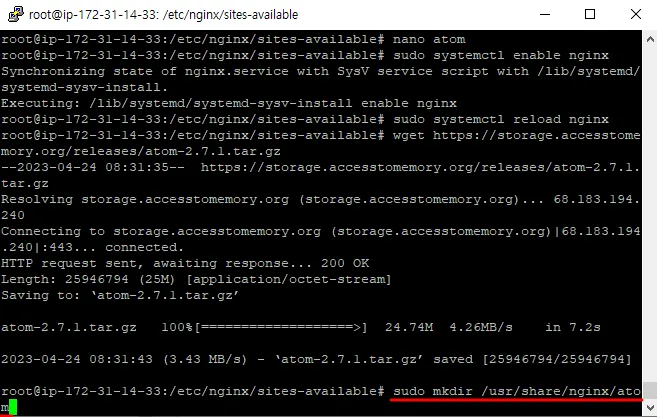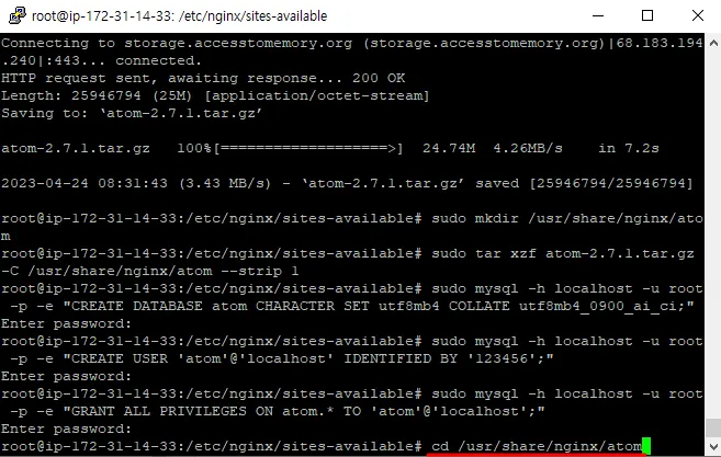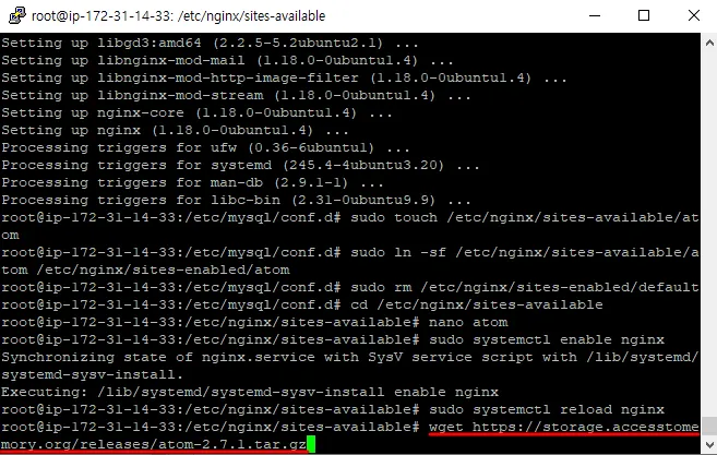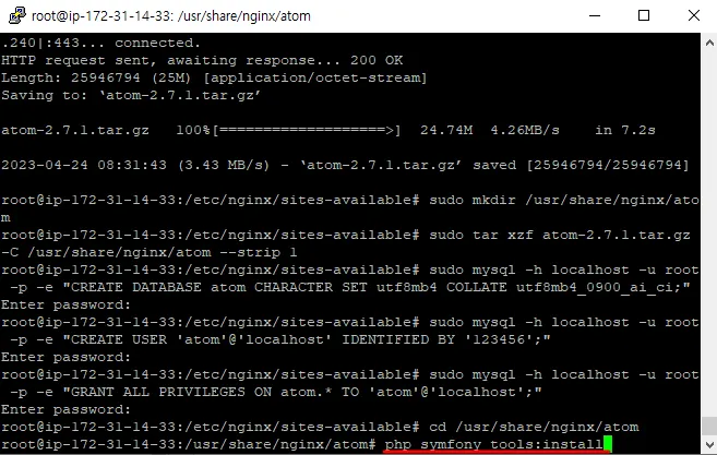 AtoM을 설치할 환경구성이 모두 완료되었습니다. 가장 쉬운 방법은 Tarball에서 AtoM을 내려받아 설치하는 것입니다.