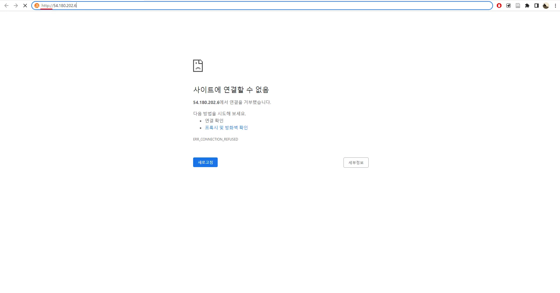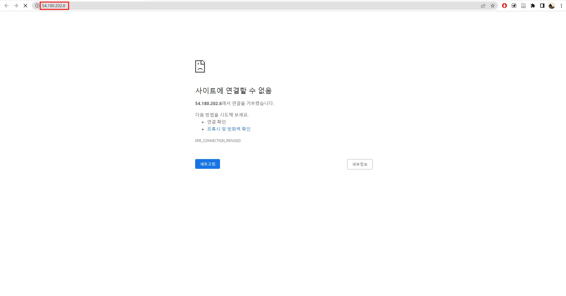 만약 아래와 같이 연결이 거부된다면, 상단의 주소창을 확인합니다.