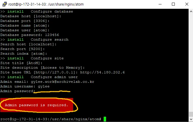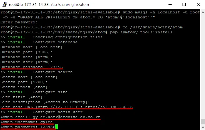 Site base URL: http://(AtoM 퍼블릭IPv4 주소) //예시: http://54.180.202.6