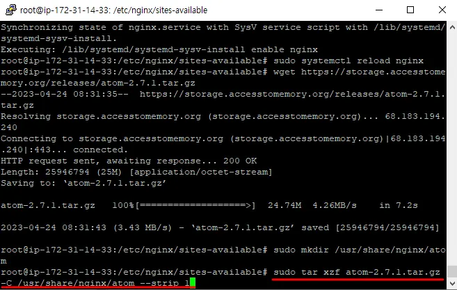 sudo tar xzf atom-2.7.1.tar.gz -C /usr/share/nginx/atom --strip 1