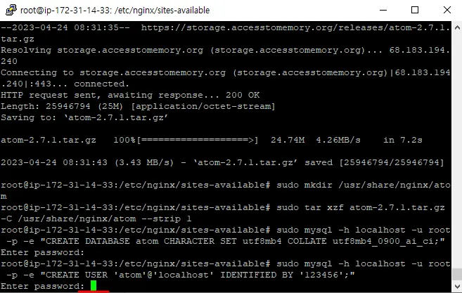 AtoM을 설치했다면, 이제 데이터베이스를 생성해 주어야 합니다.