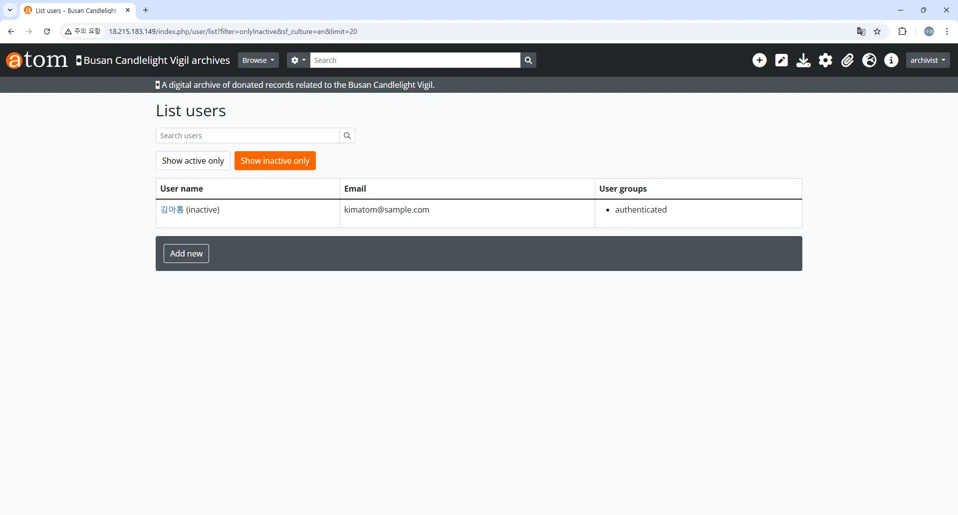 AtoM 주소 : 18.215.183.149