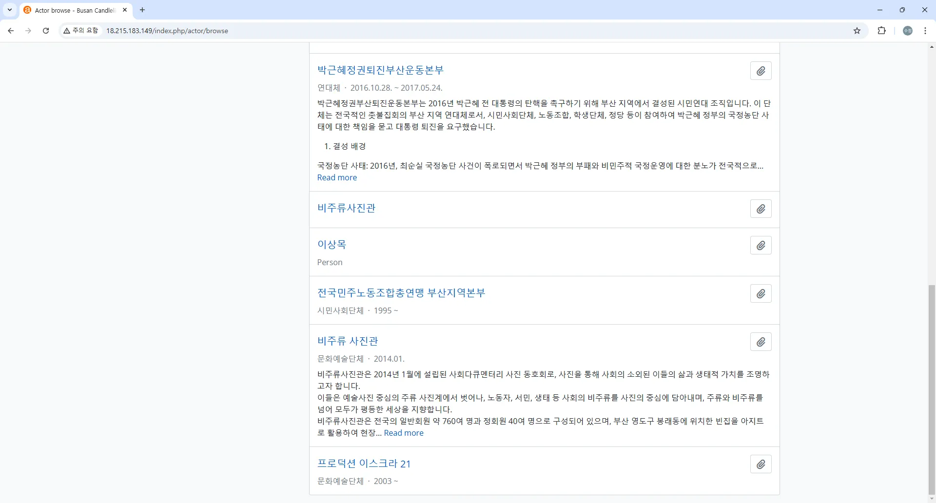‘부산’이라는 지역과 ‘촛불집회’라는 행사를 중심으로 하는 사건 아카이브